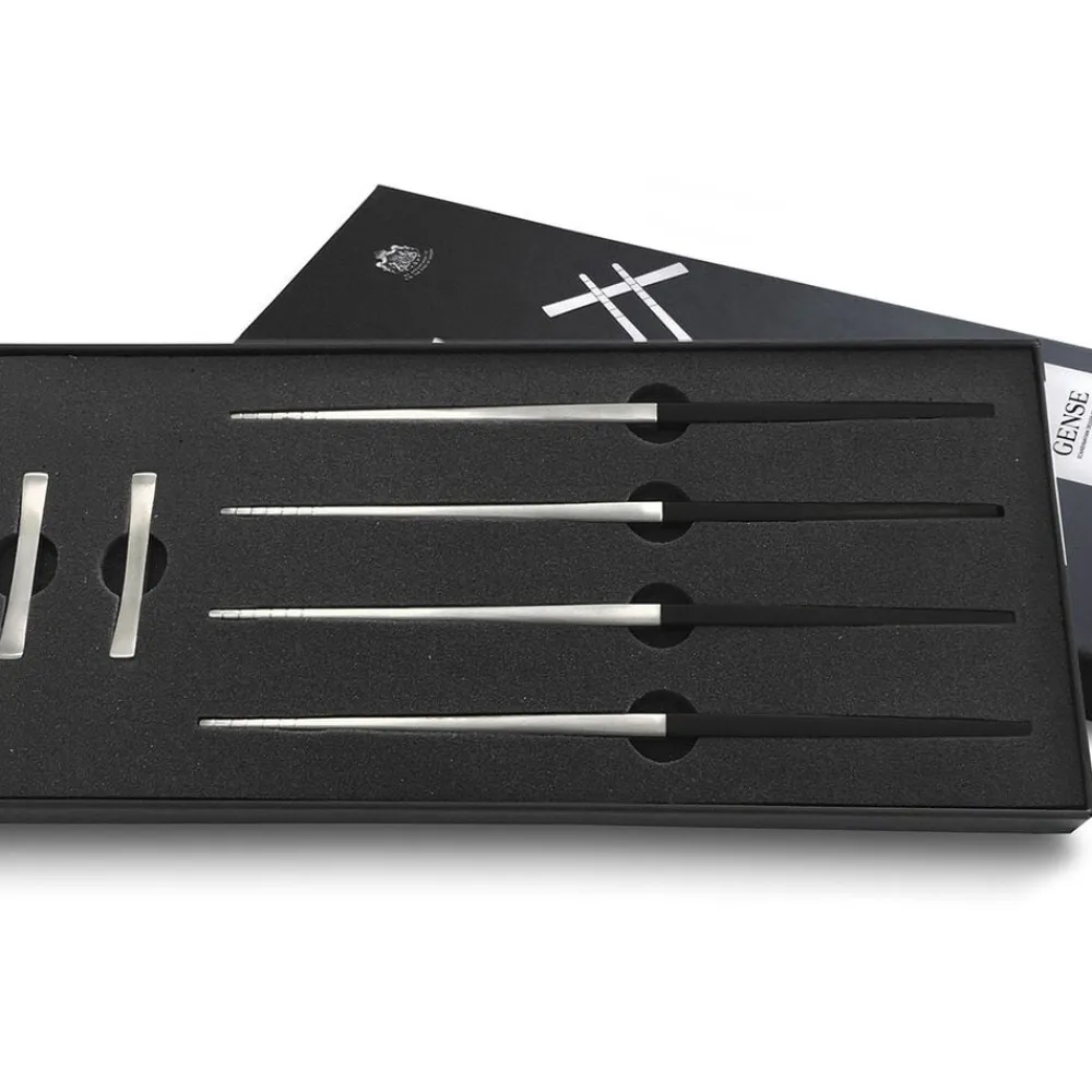 Focus de Luxes spisepinde har de samme stramme og tidløse linjer som Focus de Luxe bestikket. Designet er inspireret af koreanske spisepinde og er udviklet i samråd med koreansk ekspertise. Spisepindene er fremstillet i matpoleret rustfrit stål med en riflet overflade for at gøre det nemmere at fange maden og skafter i sort plast. Formen går fra at være elegant firkantet øverst til at blive rund nederst. Tåler opvaskemaskine, max. 55 °C.