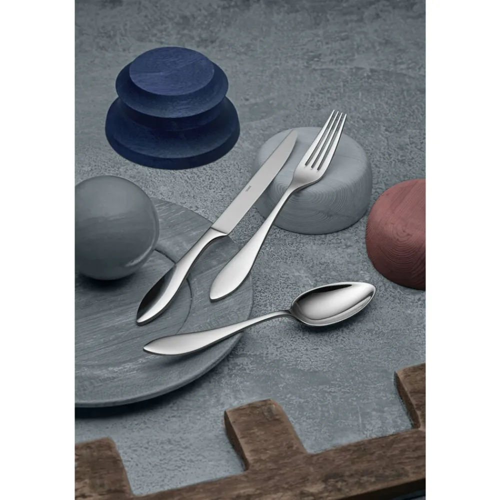 Med sine rene linjer og kurvede elegance indfanger bestikket Indra Ingegerd Råmans typiske funktionelle designtænkning. Bestikkets form kombinerer det smukke og æstetiske med enkelhed og funktion. Indra imponerer med en god størrelse og appellerer til både øje og hånd med sin fine balance. Fremstillet af højglanspoleret rustfrit stål.