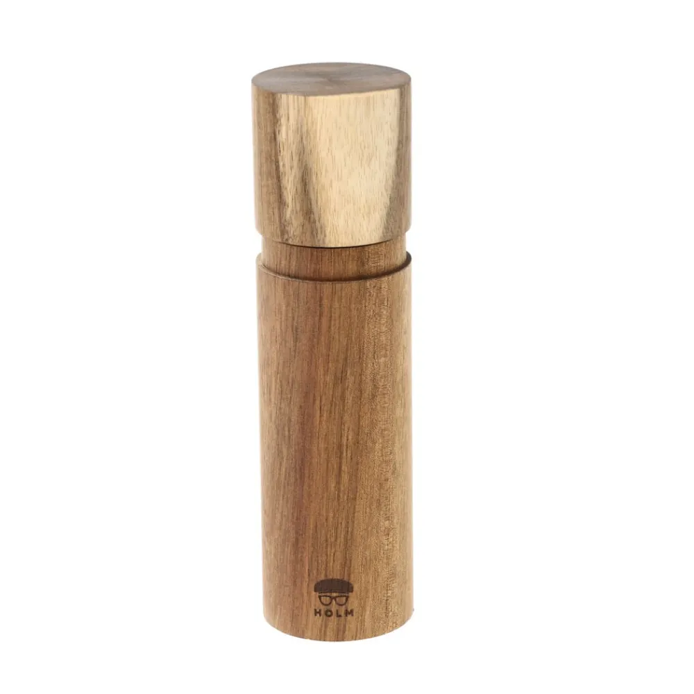 Flot peberkværn i akacietræ med keramisk kværnindsats. Kværnen har et maskulint udtryk, og du kan selv bestemme, hvor groft eller fint du ønsker at kværne. Malingsgraden justeres nemt i bunden af kværnen.