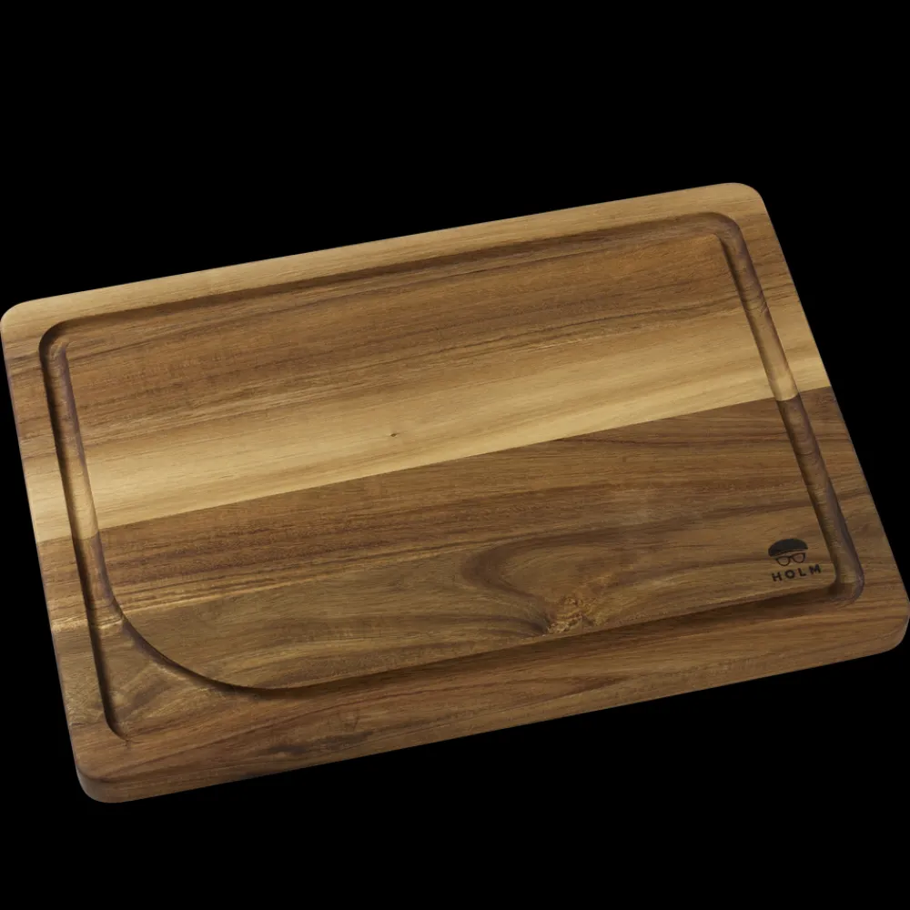 Skærebræt i akacietræ med saftrille. Det perfekte skærebræt til udskæring af store stege samt anden tranchering. Læg aldrig dit skærebræt i blød. Vaskes med varmt vand og mild sæbe.