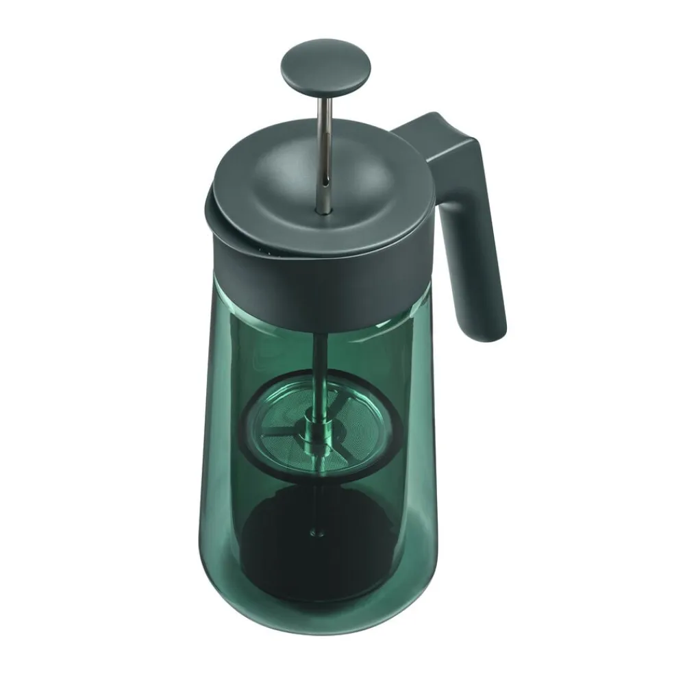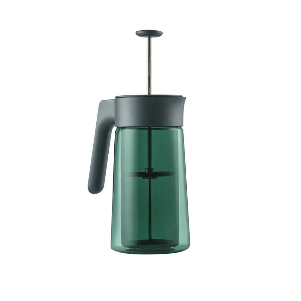 Jacob Jensen Coffee Press med CoffeeCatcher™ gør din daglige kafferutine enklere. I stedet for at efterlade den brugte kaffegrums i bunden af din Coffee Press samles grumset oven på CoffeeCatcher™. Dette gør det nemt at fjerne grumset og efterlader Coffee Press ren og klar til næste brygning. Den dobbeltvæggede konstruktion sørger for, at kaffen holder den perfekte temperatur og beskytter dine hænder mod varmen fra glasset. Coffee Pressen rummer 6 til 8 kopper.