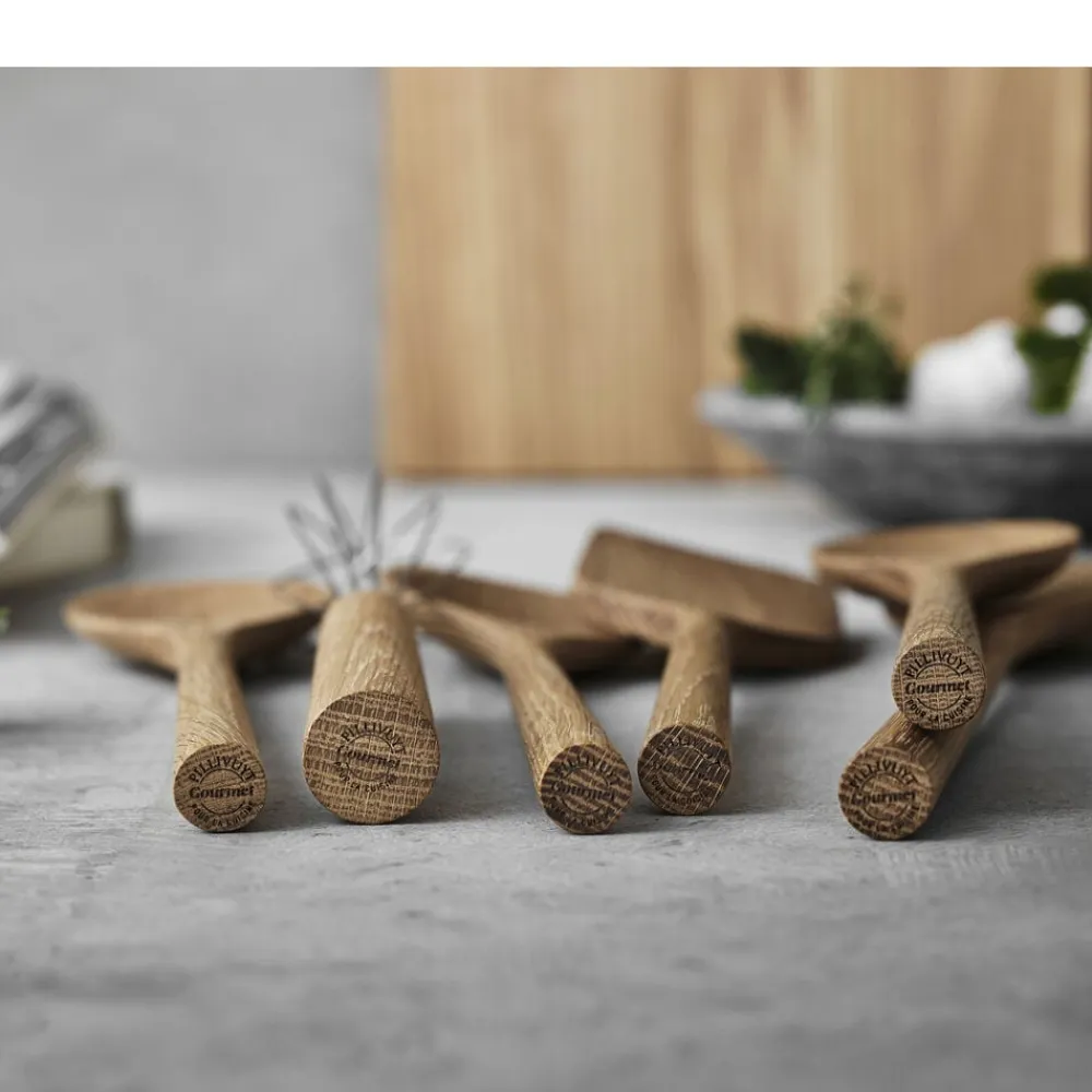 Træredskaber er behagelige at arbejde med og skånsomme mod gryder og pander. De har en levende struktur og en varm glød, der passer ind i ethvert køkken.