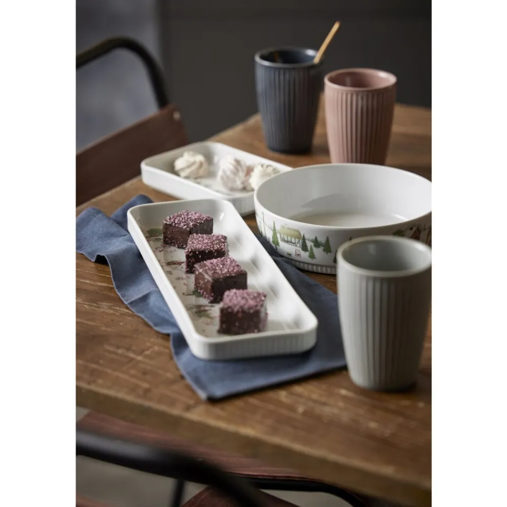 Vinter er Pillivuyts hyggelige stel, som både kan bruges til smukke juleborde og andre festlige lejligheder i de kolde måneder. De rektangulære fade fra stellet Plissé med den karakteristiske, elegante plissering danner baggrund for Vinter fadene, som er dekoreret med eventyrlige vintermotiver.