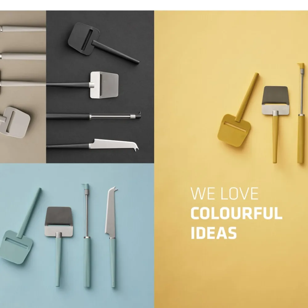 De gedigne materialer, plast og rustfrit stål, komplementerer hinanden smukt og giver redskaberne en tyngde, der skaber en god balance i hånden. Det rustfri stål er af høj kvalitet, der sikrer både skarphed og nem rengøring. Redskaberne fås i en række smukke farver, der gør dem til favoritter både i køkkenet og på spisebordet. 5 års garanti.