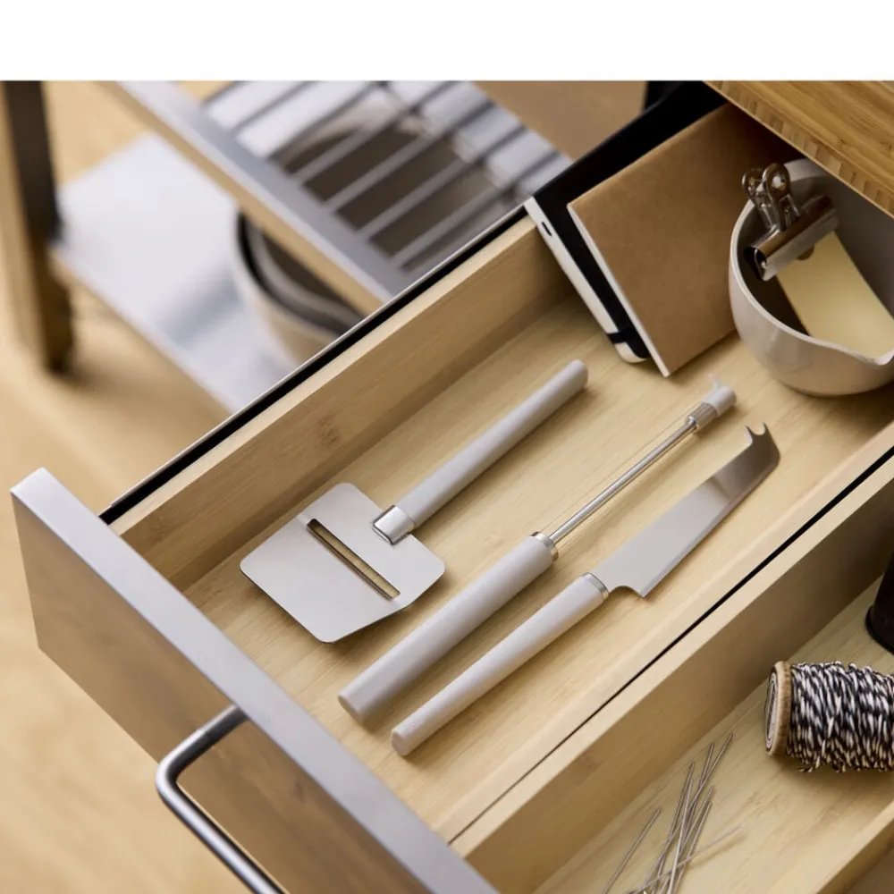 Osteskæreren med den klassiske streng er designet med fokus på detaljen. Toppen formes af den lille gaffel, der fanger osteskiven.