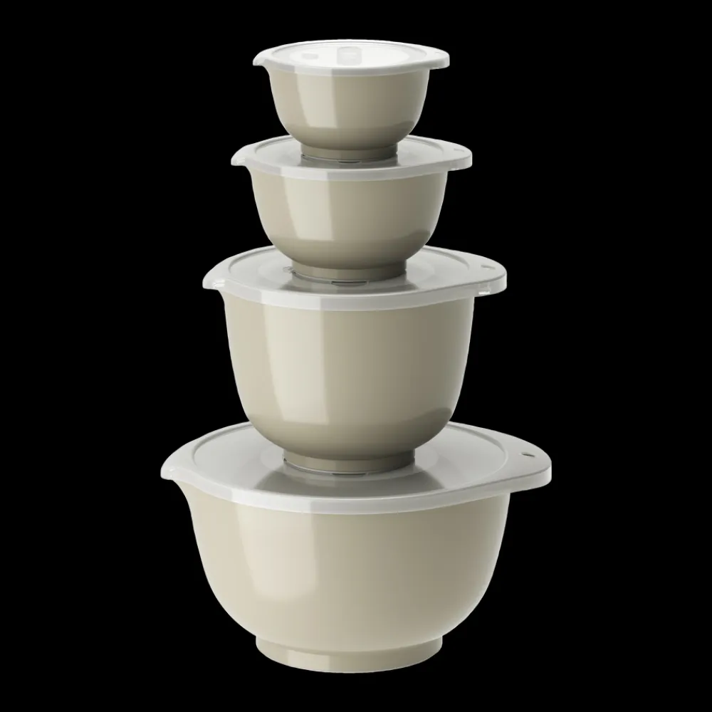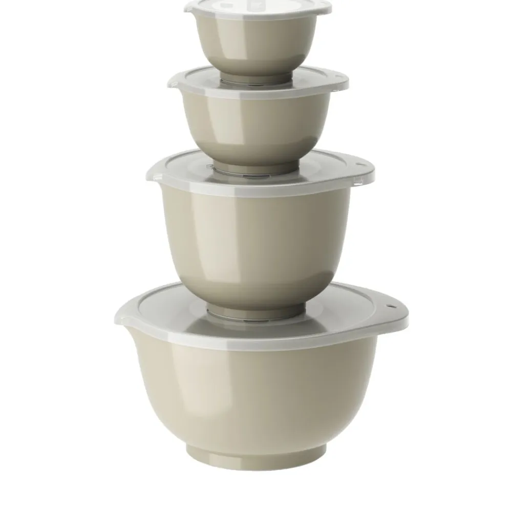 Margrethe røreskålesæt fra Rosti i 4 af de mest anvendte størrelser. Sættet indeholder 0,25 + 0,5 + 1,5 + 3 liter Margrethe-skåle med tilhørende låg.