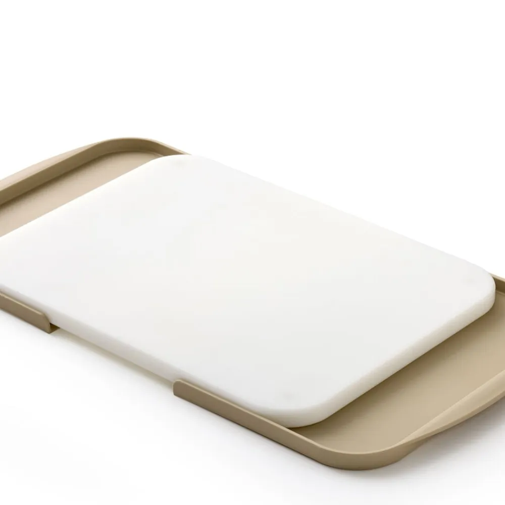 Separa bringer et professionelt skærebræt ind i det private hjem. Separa-konceptet består af et solidt og holdbart skærebræt, som hviler i to bakker. Skærebrættet er skåret ud af en blok af hård plastik (hdpe), der er hygiejnisk og meget stabilt. Materialet bruges i professionelle køkkener, da det er skånsomt mod knive, har lav fugtabsorption og er modstandsdygtigt over for syrer og baser. Separa gør hverdagen nemmere og hjælper dig let og intuitivt med at holde de friskhakkede råvarer og affaldet adskilt, når du går i køkkenet og tilbereder maden. Det er ganske enkelt: Affald til den ene side og friskhakket til den anden side i hver sin bakke, der er lige lette at tømme.