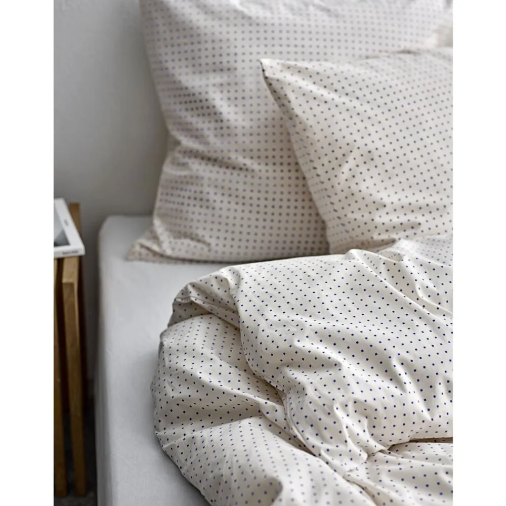 Et diskret og minimalistisk design med fine kvadratiske prikker, der skaber et roligt og elegant mønster. Petit er til dem, der foretrækker et afdæmpet, grafisk udtryk i soveværelset. Fremstillet i 100 % bomuld i en blød og åndbar renforcé lærredsvævning.