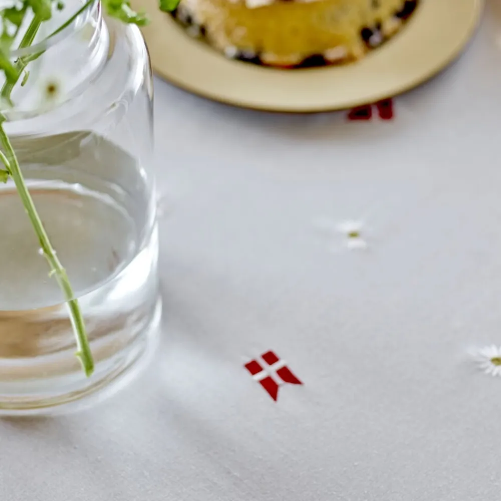 Vi tilbyder Tillykke-designet både som dug og dækkeserviet, så du kan skabe den perfekte festlige borddækning. Lad Dannebrog og margueritter danne baggrunden til dine særlige øjeblikke.