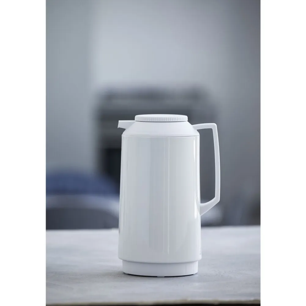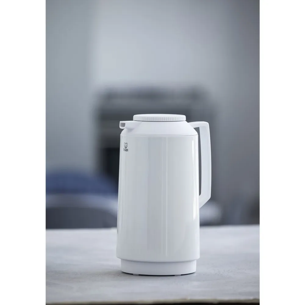 Termokanden fra Tiger er med sit enkle, klassiske design den perfekte termokande og lige velegnet til kolde og varme drikke. Kanden har glasindsats, rummer 1 liter og åbnes og lukkes ved at dreje på låget. Hvid.