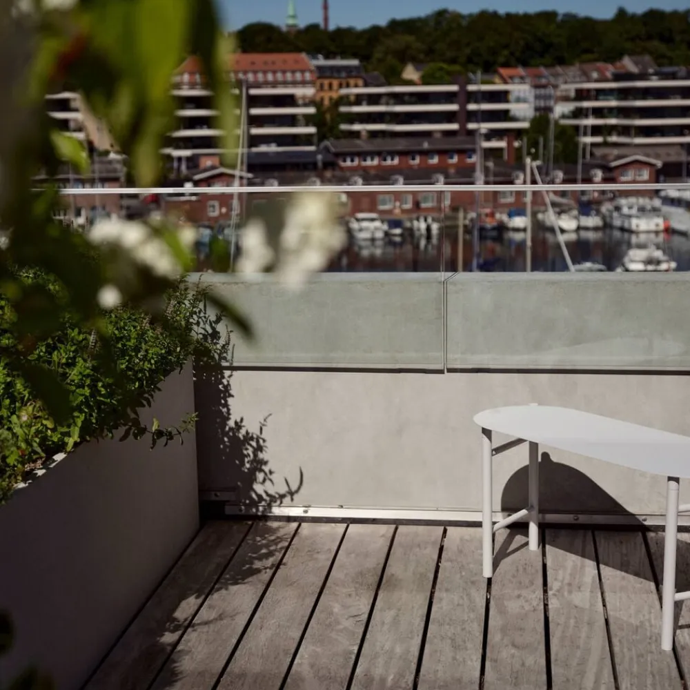 Disc-bænken er med sine 90 cm siddebredde perfekt til to. På trods af sit lette udtryk er den solid i brug. Den er udført i pulverlakeret stål og kan derfor tåle at stå ude. Den passer perfekt på altaner i byen eller små sommerhusterrasser. Præcis som resten af Disc-serien kan bænken foldes sammen, så den er let at flytte med eller pakke væk for vinteren. En anden mulighed er at invitere den ind i entreen eller stuen og bruge den til små stillebens og planter.