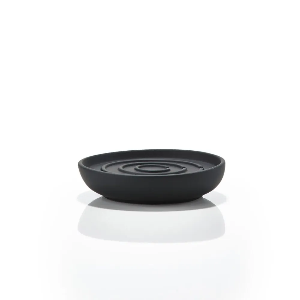 Sæbeskålen fra Nova badserie spreder ro og harmoni på badeværelset. Serien skaber fornemmelsen af luksus og spa-stemning med sin uimodståelige, lækre soft touch-overflade med detaljer i stål-look og et blødt formsprog. Dia. 11 cm, højde 2,5 cm.