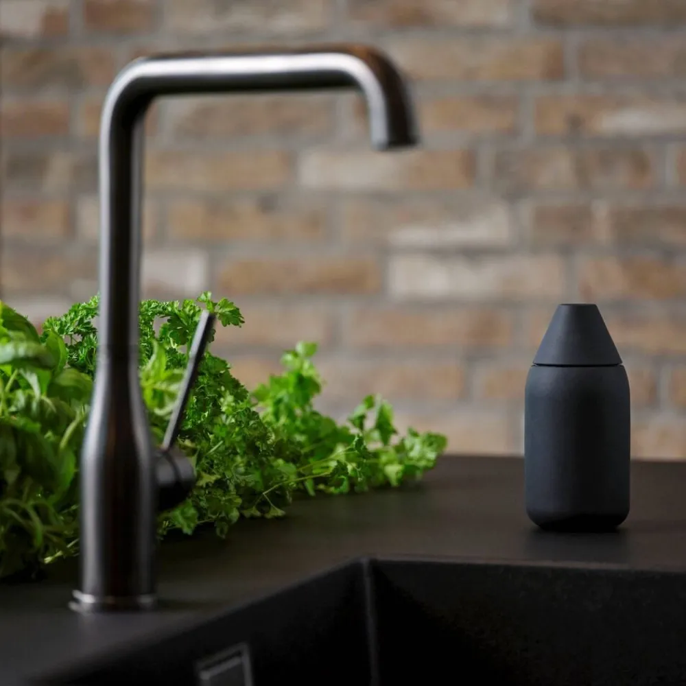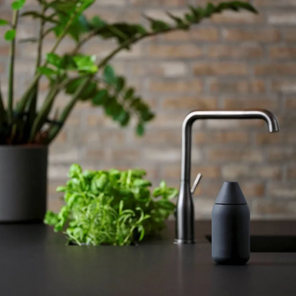 Af og til kan små designs få dig til at gøre store øjne. Se bare hvor lækkert sæbedoseringen ved vasken kan løses. Singles dispenserens raketformede krop har en futuristisk elegance. Takket være den brede, cylinderformede bund står dispenseren stabilt på bordet. Med et let tryk kan du dosere sæbemængden fra hullet i toppen. Når der skal påfyldes en ny portion, skruer du toppen af med et snuptag.