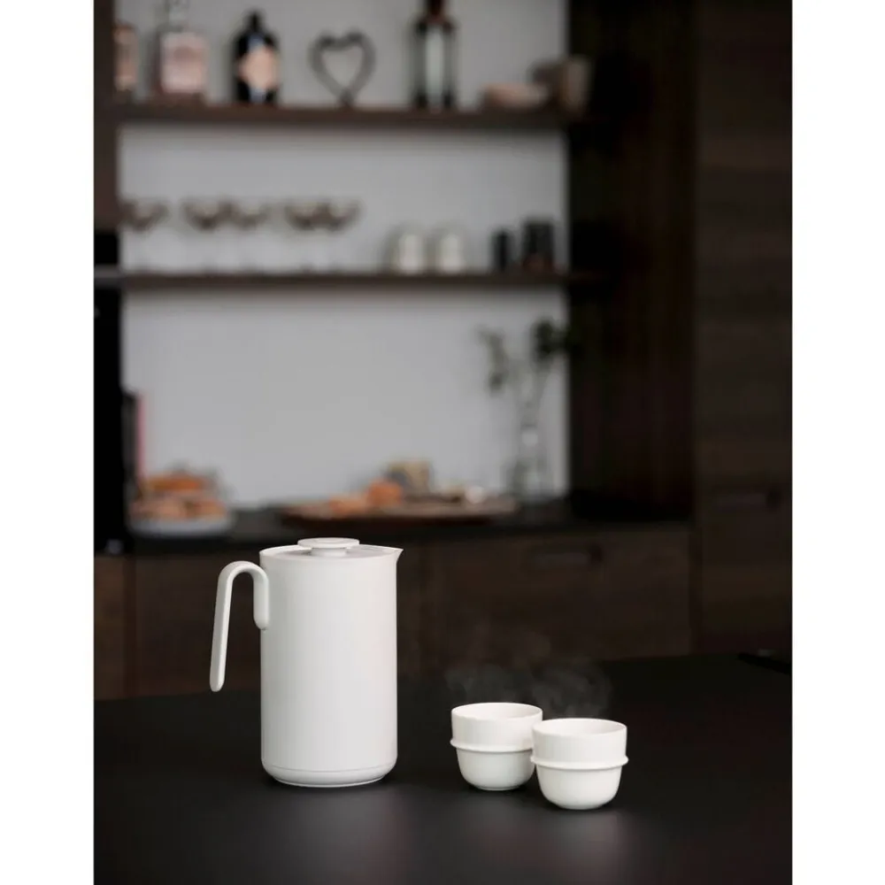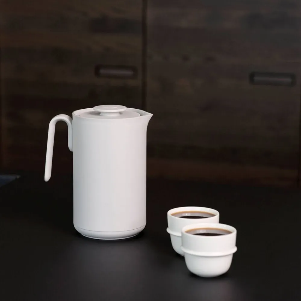 Singles Termokanden gør det, de fleste termokander gør – holder varme drikke varme. Den gør det bare lidt smukkere med sine ultraenkle linjer designet af danske VE2 og indbydende farver, der klæder din kaffe. Den har et praktisk klik-låg, så du slipper for at dreje, når du skal skænke. Et enkelt tryk på toppen er nok, så flyder det sorte guld i en fin stråle. Kanden har en glaskolbe inderst og en PP-skal yderst.