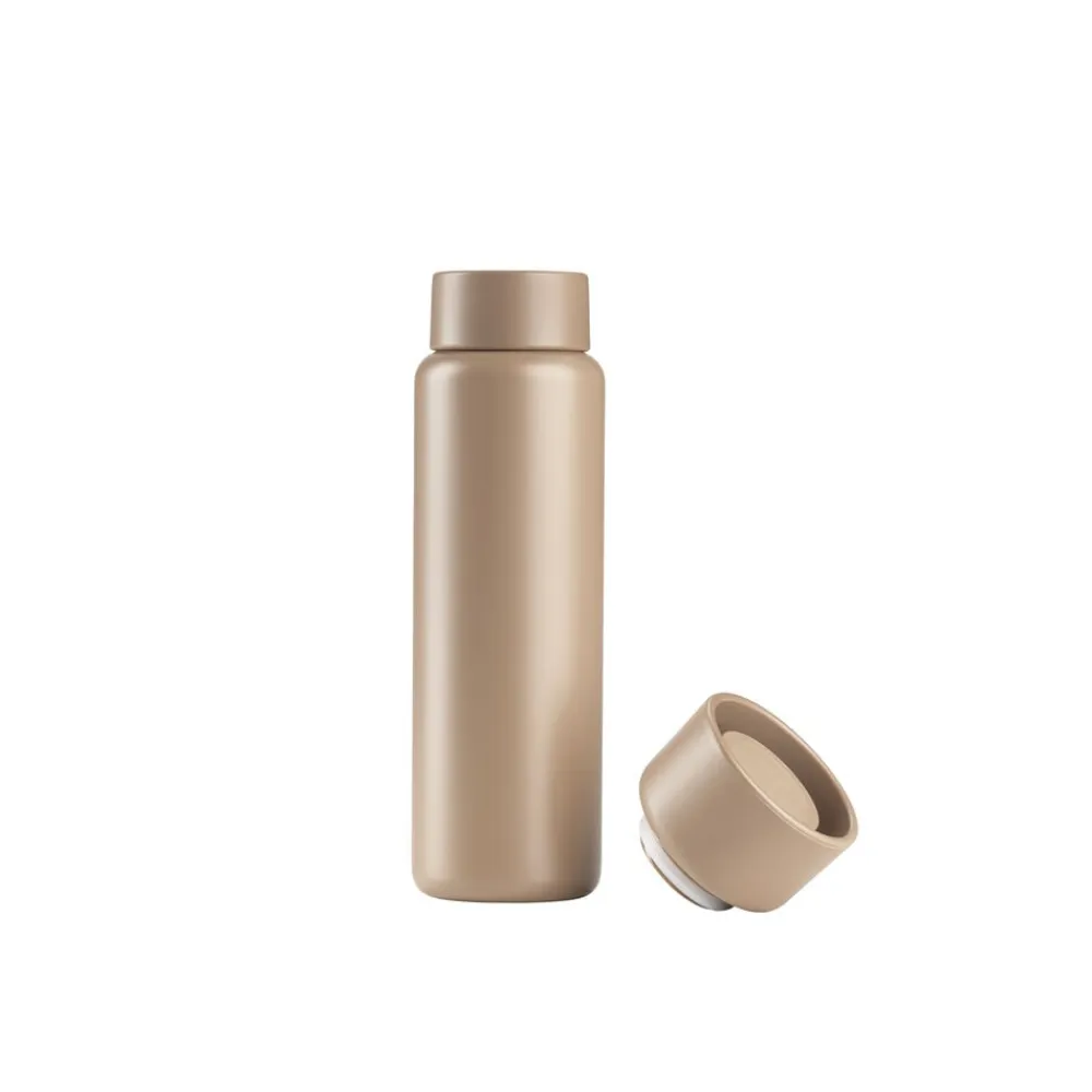 Den dobbeltvæggede flaske i rustfrit stål holder kaffen varm i op til 12 timer og dine kolde drikke forfriskende kølige hele dagen. Perfekt til både morgenpendling, urbane eventyr og hydration på farten.