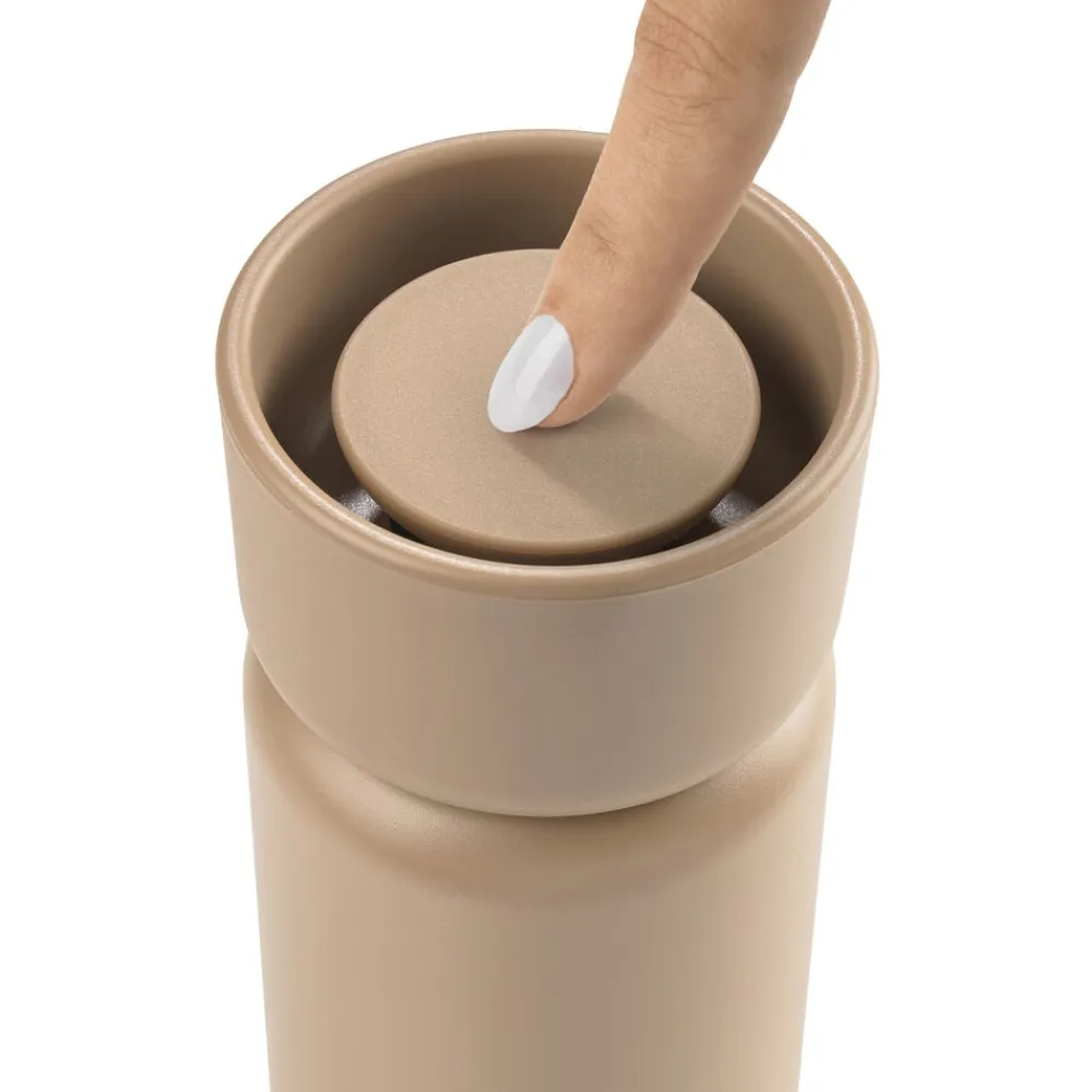 Når kaffen skal nydes, åbnes det lydløse kliklåg let med én hånd. Koppen har 360° drikkeåbning og en blød kant, der minder om din yndlingskop. Flaskens brede åbning gør det nemt at tilsætte både isterninger, teposer og sikrer problemfri påfyldning og rengøring.