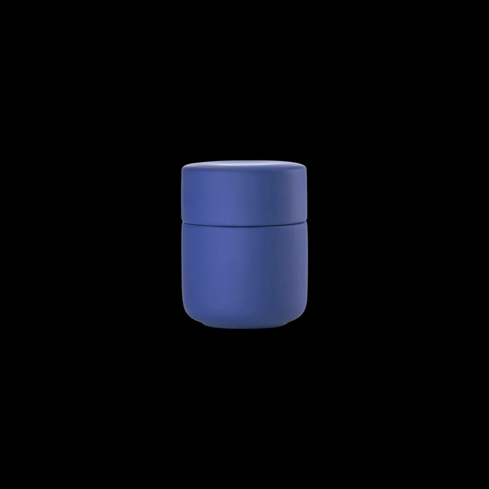 Keramikkrukken med låg har samme enkle, organiske formsprog som resten af den skønne badserie Ume. Den kan rumme dine hårspænder, makeup, vatpinde, vatrondeller eller hvad du ellers har behov for at ha’ ved hånden, men ikke nødvendigvis i syne, på badeværelset.