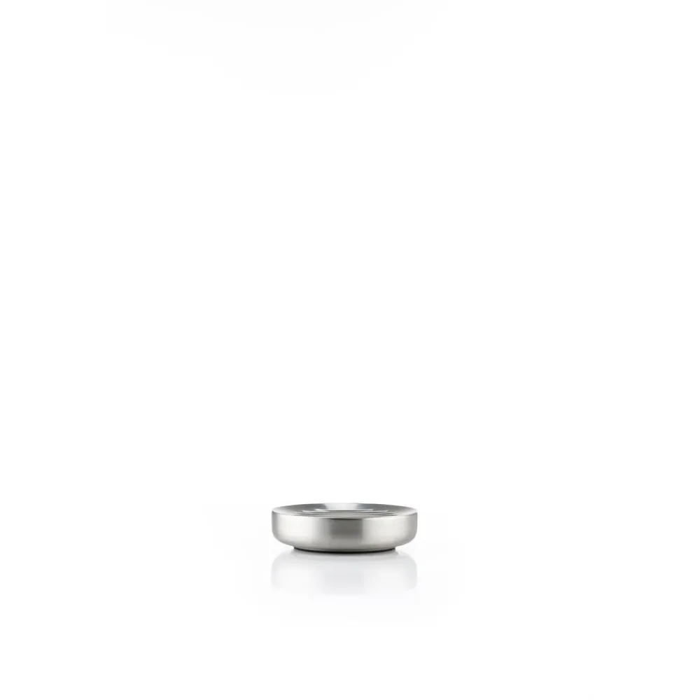 Til bordet findes både sæbedispenser, sæbeskål samt tandbørstekrus samt rundt bordspejl med vippefunktion. På trods af stålets mathed reflekterer lyset sig smukt i overfladen og giver overfladen liv og karaktér. Alt i alt en formfuldendt forvandling af en ægte Zone-klassiker.