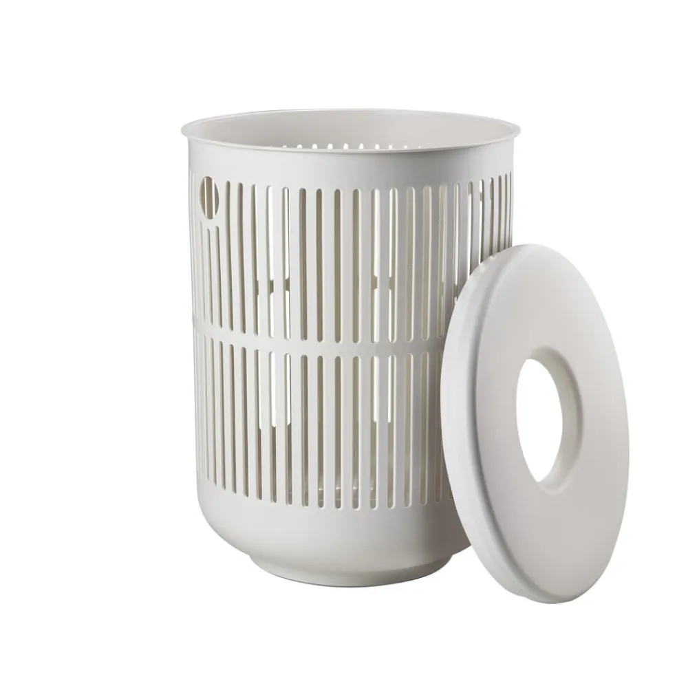 Organisk og praktisk – så simpelt kan man beskrive vasketøjskurven fra Zones Ume-serie. Med denne kurv er det nemt at holde styr på vasketøjet. Låget kan let løftes af, men det behøver du ikke altid. Strømper og andre småting kan nemlig smides igennem hullet i midten. På siden er to mindre huller, der fungerer som håndtag, når vasketøjskurven skal flyttes.