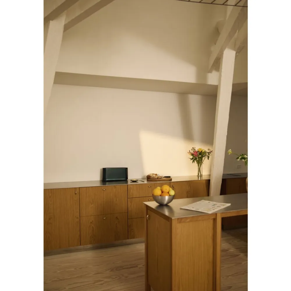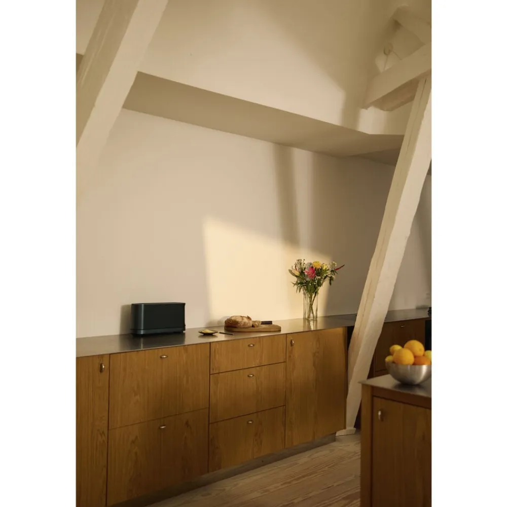 Jacob Jensens Long Slot brødrister er skabt til at løfte din morgenrutine til et nyt niveau. Det elegante design indeholder et display, der vækkes til live, når din hånd nærmer sig, ligesom det slukker, når brødristeren ikke er i brug. Brødristeren kan placeres enten langs en væg eller stå fritstående med displayet altid let tilgængeligt.