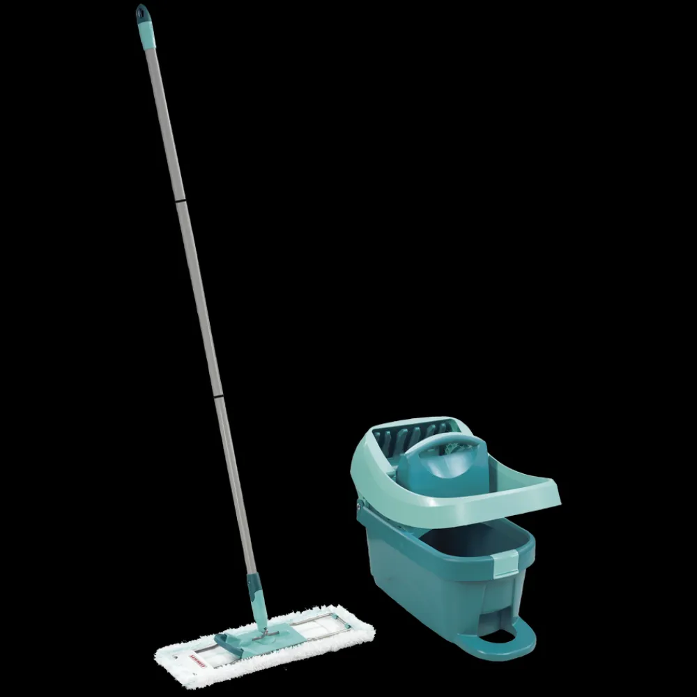 Profi XL Mobile gulvvaskersættet gør gulvvasken hurtigere og samtidig mere skånsom for både hænder og ryg. Du behøver hverken at få hænderne i vand eller at bukke dig ned. Du løsner bare mikrofiberkluden fra holderen med et hurtigt tryk med foden, dypper kluden i spanden og placerer den i vrideren, som du også betjener med foden, og klikker den på plads i holderen. Lige så effektivt, som hvis du vred kluden med hænderne.