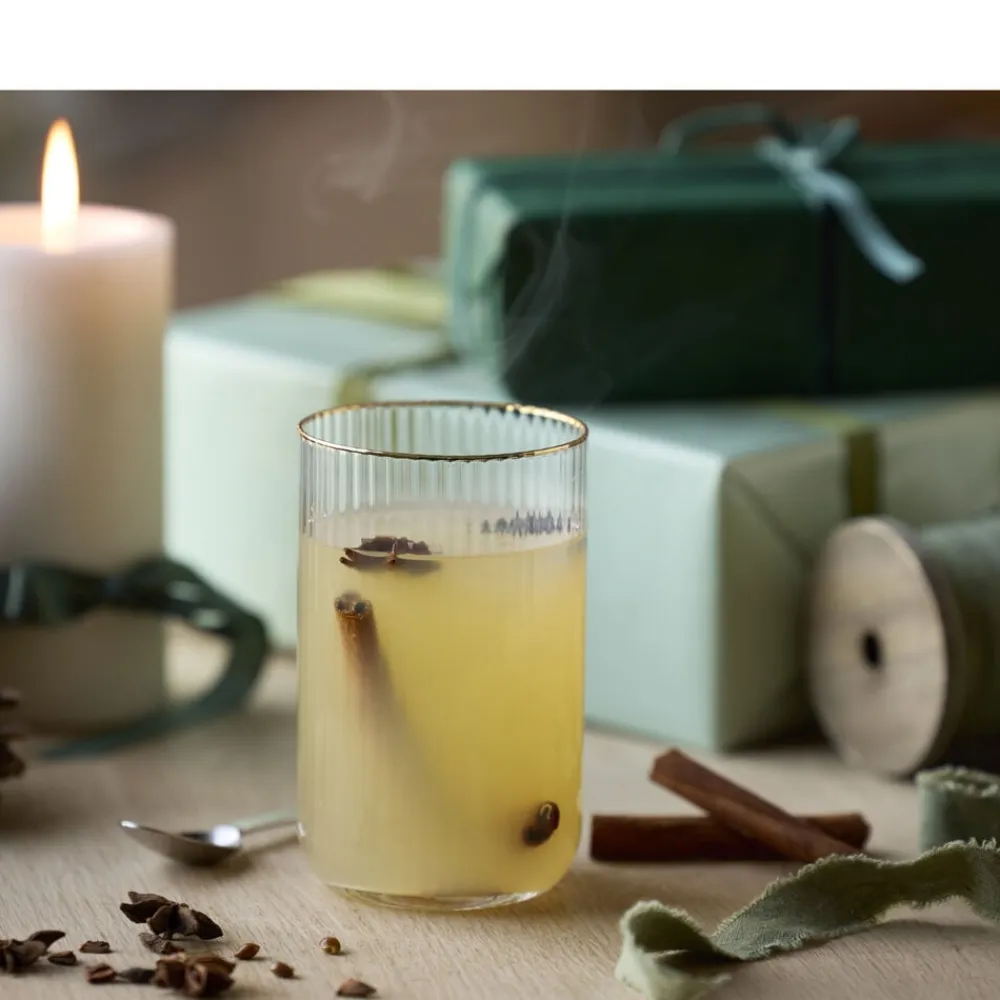 Smukt highballglas med bløde, rundede former. Det elegante, riflede design med en fin guldkant giver glasset et flot vintagelook, der samtidig afspejler tidens trends. Brug det til alt fra spritz og mojitos til hjemmelavet lemonade eller en iskold iste – og lad de fine facetter reflektere lyset og glassets indhold på smukkeste vis. 50 cl. Sæt med 4 stk.