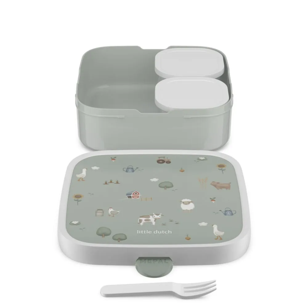 Ekstra stor, robust og rummelig Mepal madkasse med Little Farm-motiv. Madkassen har en smart og effektiv lukkemekanisme, som er nem for børnene at betjene.