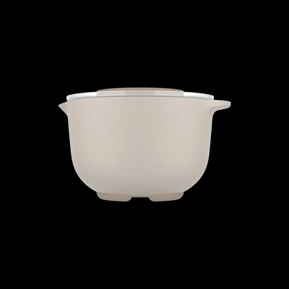 Røreskålen er lavet af pp, et plastmateriale, der tåler mikrobølgeovn og temperaturer op til 110 °C. To smarte åbninger i den skridsikre bundring under røreskålen forhindrer, at der samler sig vand, når du sætter skålen på hovedet i opvaskemaskinen.