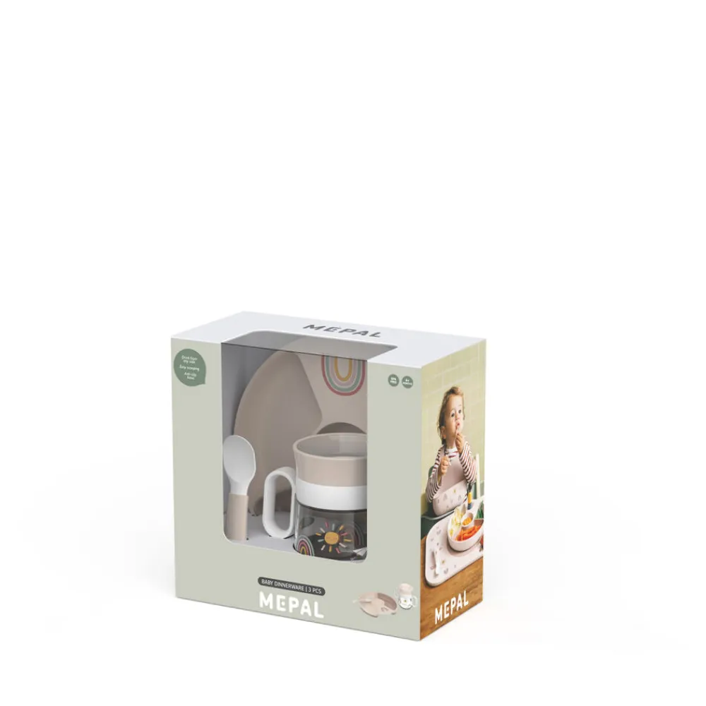 Mio Begyndersæt til små børn, der skal lære at spise og drikke selv. Sættet består af en tallerken med opdeling, en begynderkop 200 ml og en ske. Velegnet til opvaskemaskine. Fra ca. 6 måneder.