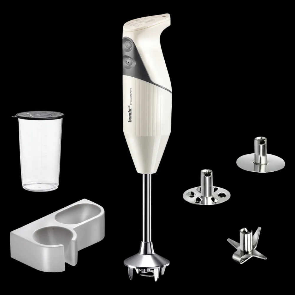 Med din bamix® Mono og dens tilbehør kan du piske, purere, røre, blende, mikse, mose, knuse og hakke.