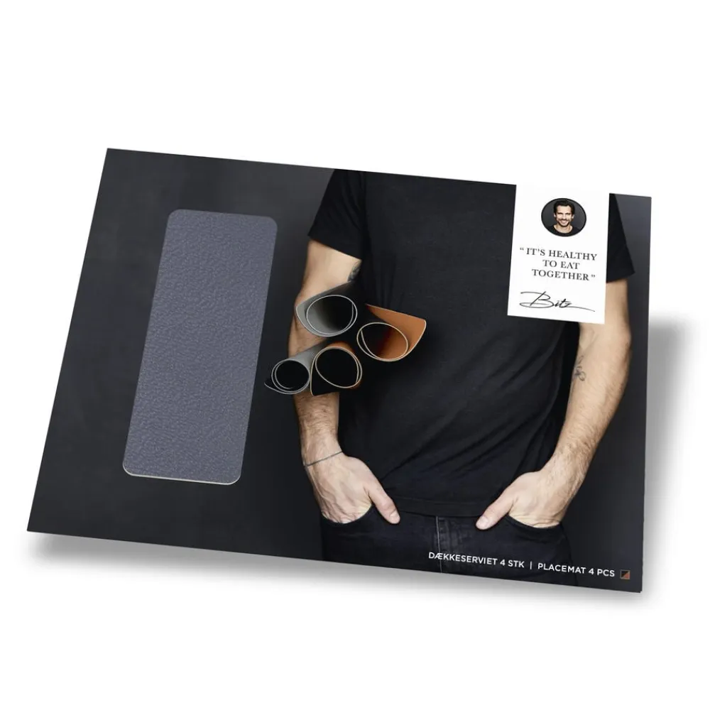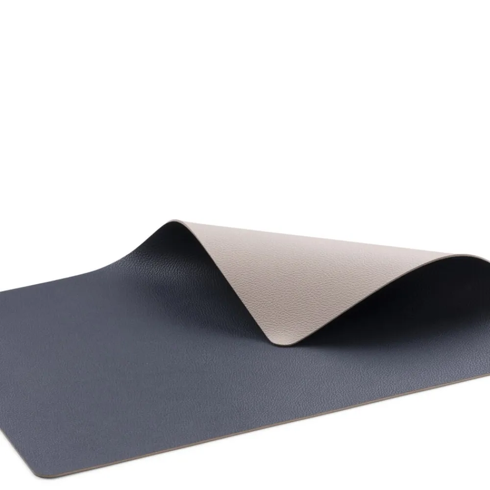 Vendbare dækkeservietter i praktisk vaskbart læderlook giver borddækningen et råt og moderne udtryk. Kongeblå/Sand.