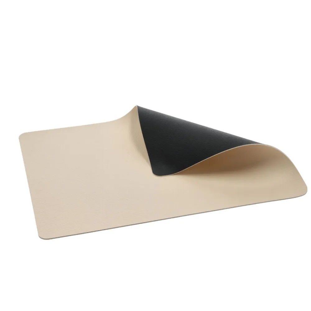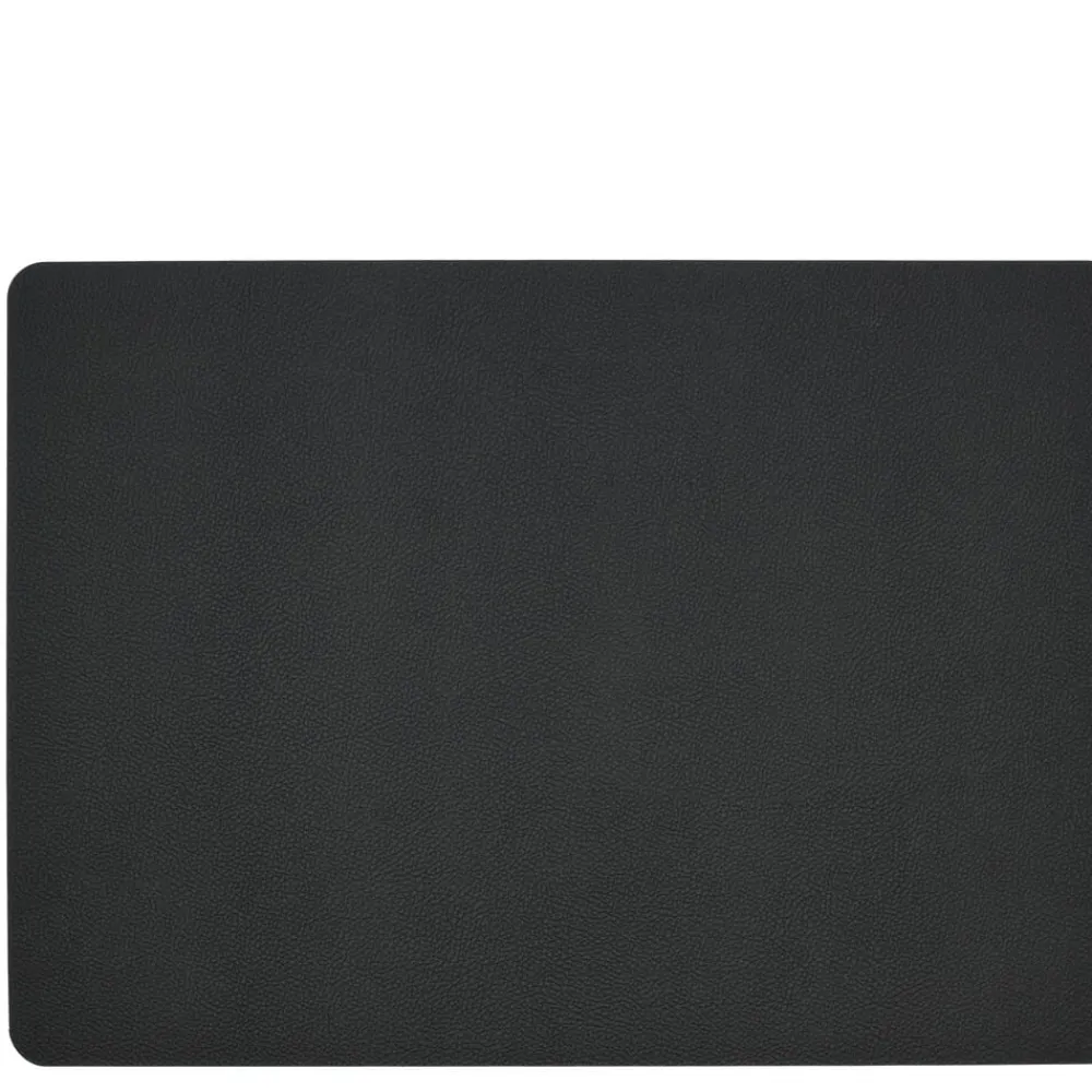 Vendbare dækkeservietter i praktisk vaskbart læderlook giver borddækningen et råt og moderne udtryk. Sort/Creme.