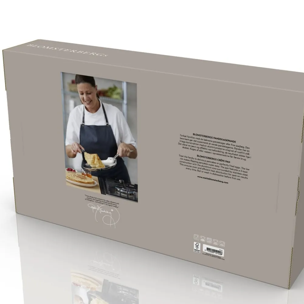 Forkæl familien med de lækreste pandekager eller fine spejlæg. Pandens lave kant gør det supernemt at vende pandekagerne. Panden er fremstillet i satinpoleret rustfrit stål 3-PLY (aluminiumkerne med rustfrit stål på indvendig og udvendig side, fra bund til kant). Denne konstruktion gør, at varmen fordeles jævnt og effektivt.
