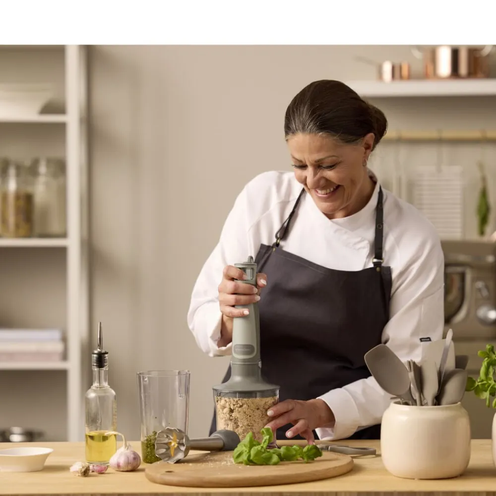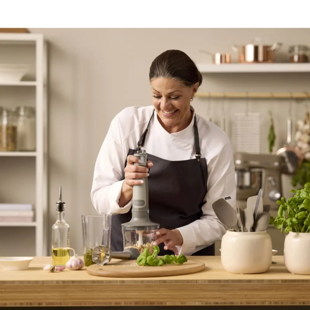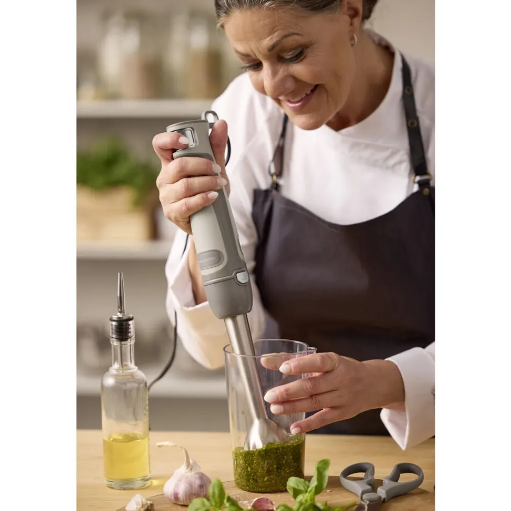 Stavblendersæt til både små og store køkkenopgaver. Stavblenderen har glidende hastighedsjustering og lader dig styre tempoet med én knap. Sættet indeholder en 500 ml minihakker, der hurtigt klarer nødder, krydderurter og grøntsager samt et 600 ml målebæger, som er perfekt til at måle ingredienser eller blande mindre portioner direkte i bægeret.