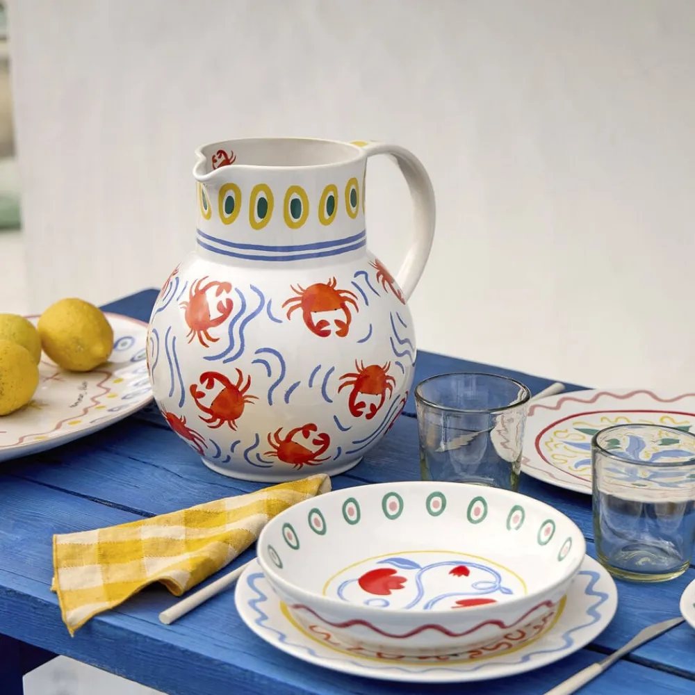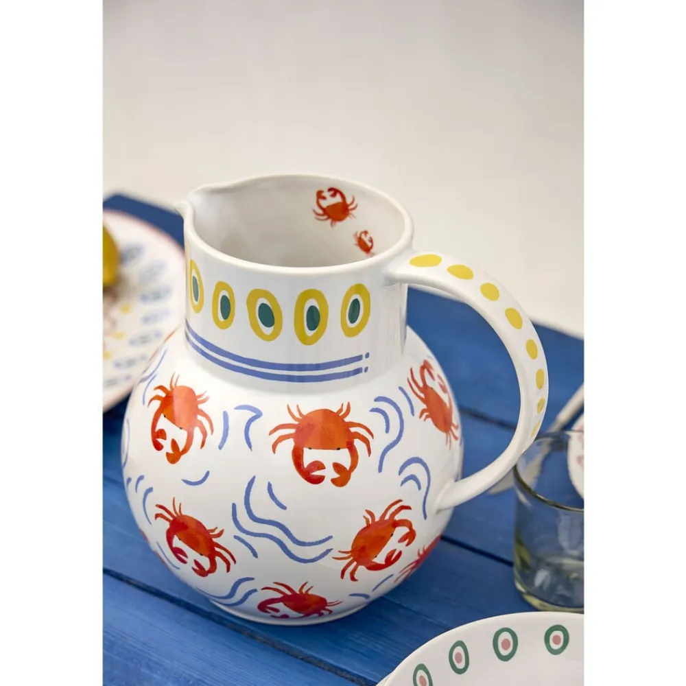 Kande, 5,95 liter. Kanden skaber en stemning af hav, strand og sydlandsk afslappethed til bordet med sine livlige røde krabber og bølgende blå linjer. Den rummelige størrelse gør den perfekt til at samle venner og familie om forfriskende drikke og hyggelige måltider under den varme sommersol.