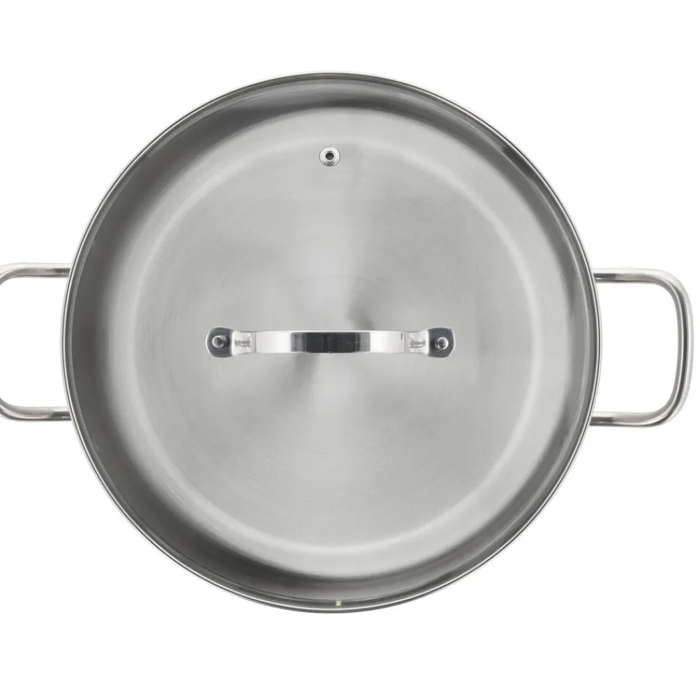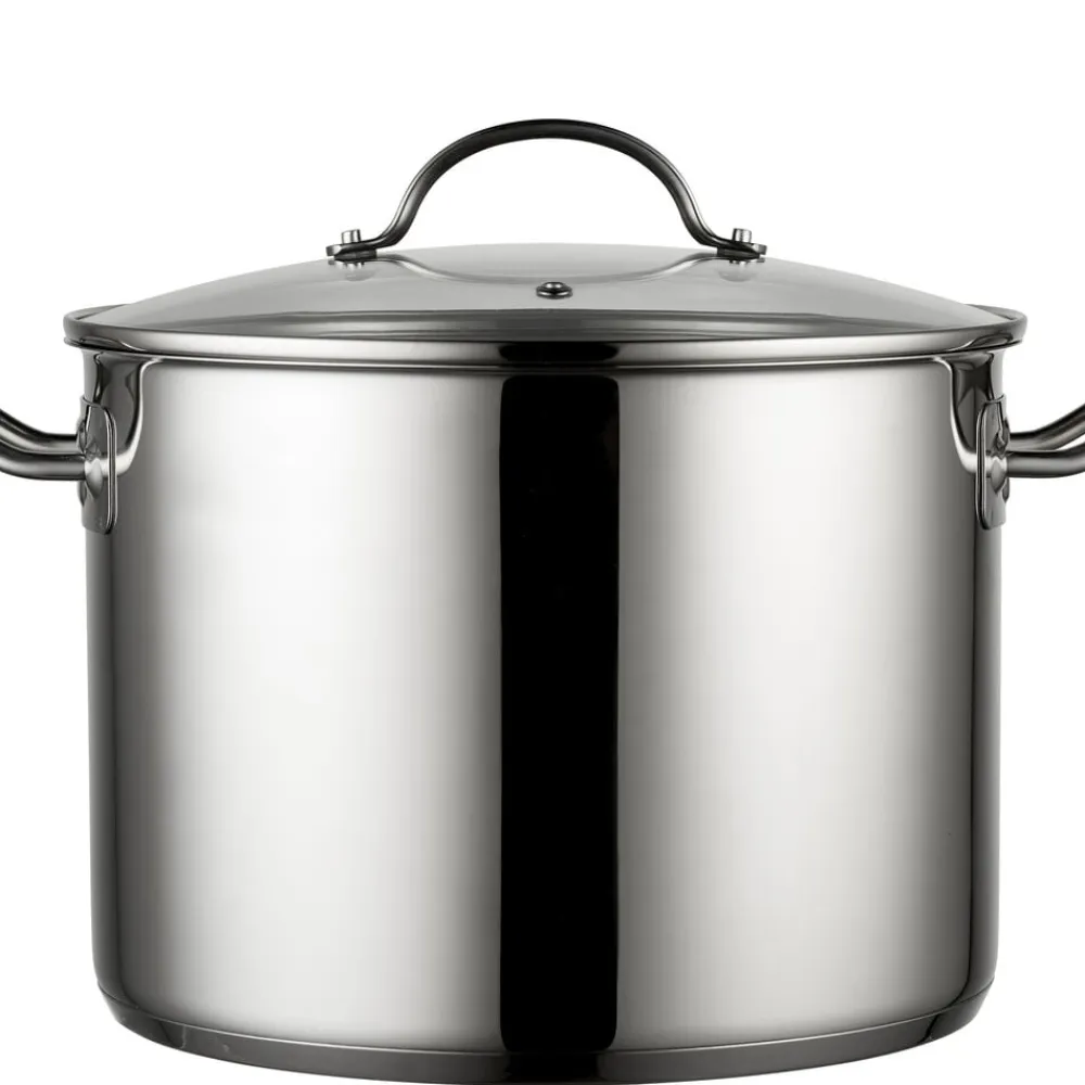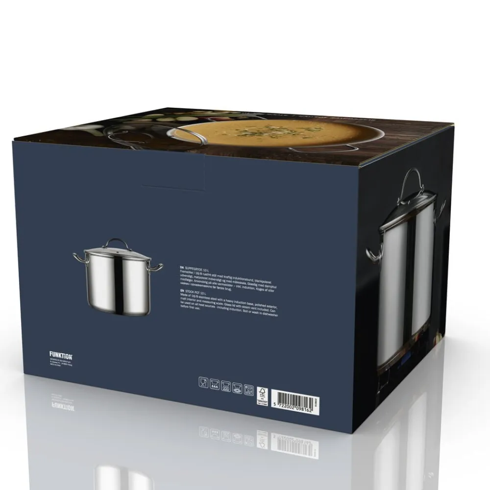 Suppegryde, 10 liter, fremstillet i 18/8 rustfrit stål med kraftig induktionsbund, blankpoleret udvendigt, matpoleret indvendigt og med måleskala.