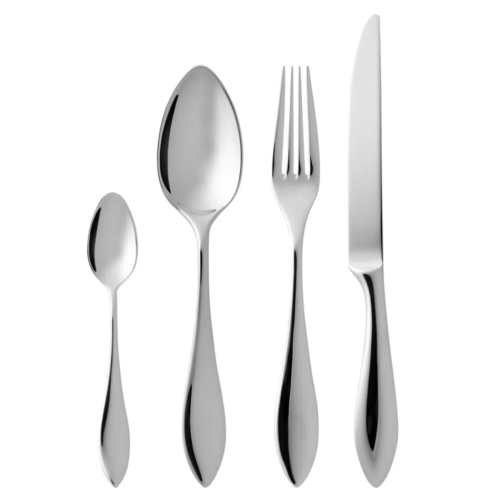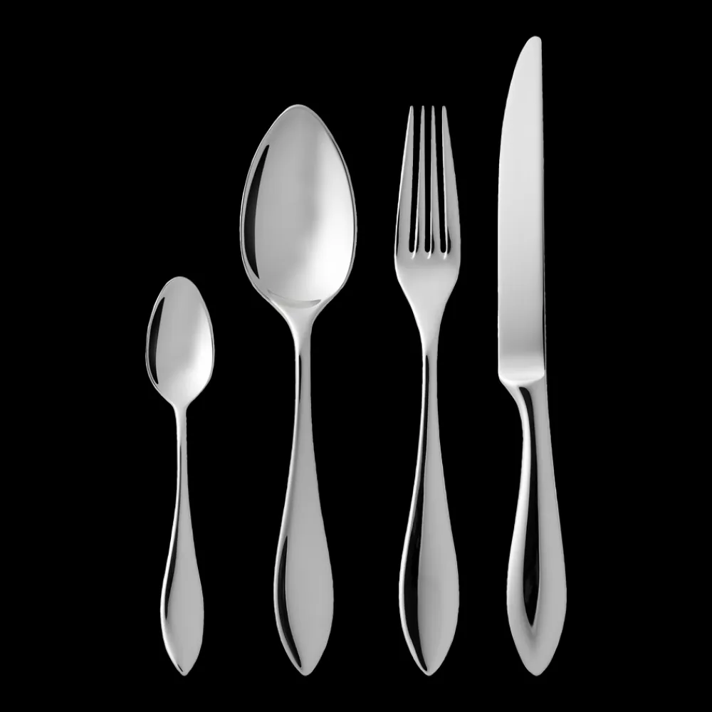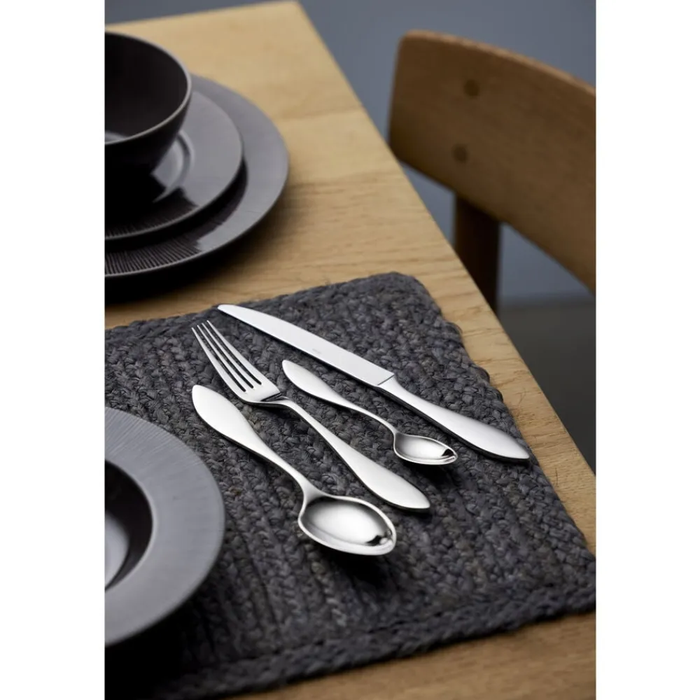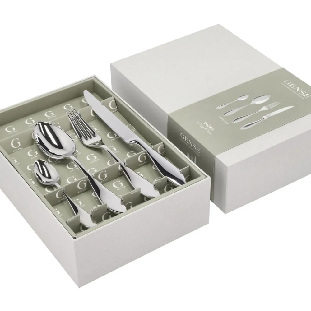 Med sine rene linjer og kurvede elegance indfanger bestikket Indra Ingegerd Råmans typiske funktionelle designtænkning. Bestikkets form kombinerer det smukke og æstetiske med enkelhed og funktion. Indra imponerer med en god størrelse og appellerer til både øje og hånd med sin fine balance. Fremstillet af højglanspoleret rustfrit stål.