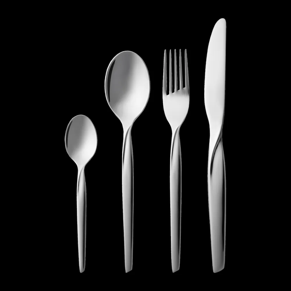 Twist har et dekorativt, legende design, der appellerer til det moderne menneske med sans for æstetik og kvalitet. Illusionen af det lille vrid i formgivningen giver bestikket den helt særlige karakter. Den blanke overflade og de bløde kurver giver din borddækning personlighed og et eksklusivt og moderne udtryk. Bestikket er nikkelfrit, så du også kan bruge det, hvis du har følsom hud eller nikkelallergi. Tåler opvaskemaskine.