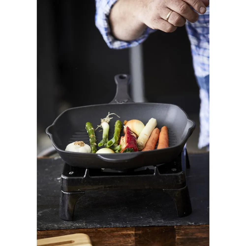 Med en god grillpande kan du stege saftige bøffer og rustikke grøntsager som aldrig før. Rillerne i bunden hæver kødet op, hvorved der skabes en god, indirekte varme. Præcis som du kender det fra grillen. Rillerne får desuden saft og fedt til at løbe fra. Med HOLMs grillpande kan du grille hele året.