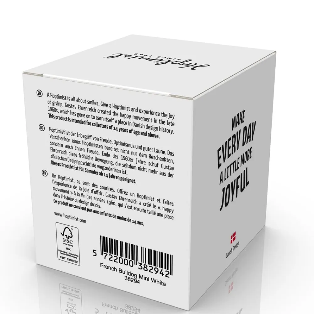 Charmerende og lidt stædig. Den franske Hoptimist-bulldog er hvid som flødeskum og lige så uimodståelig. Den kvitterer med små hop, så snart du giver den lidt kærlig opmærksomhed.