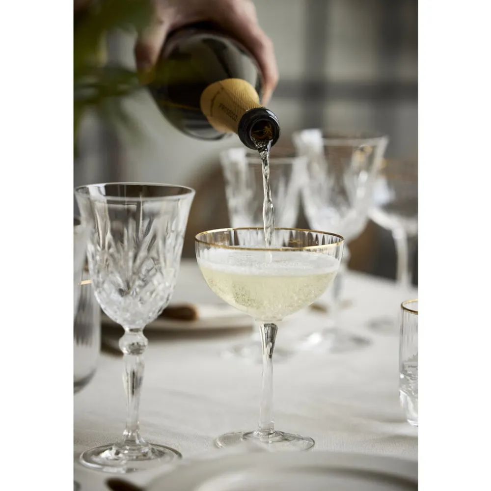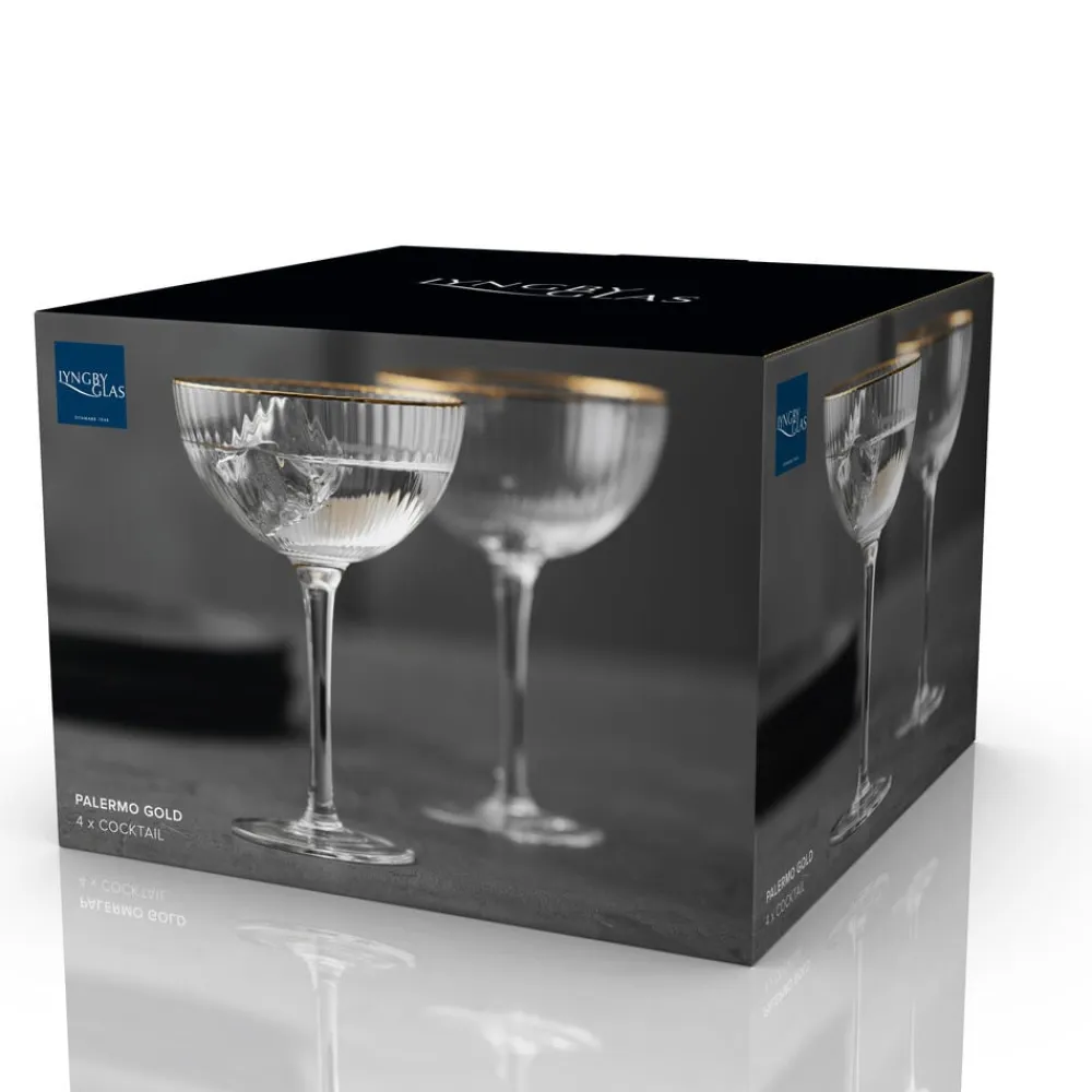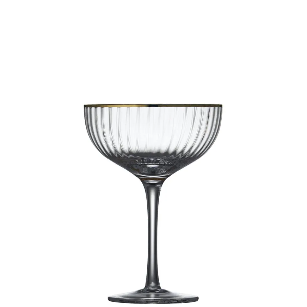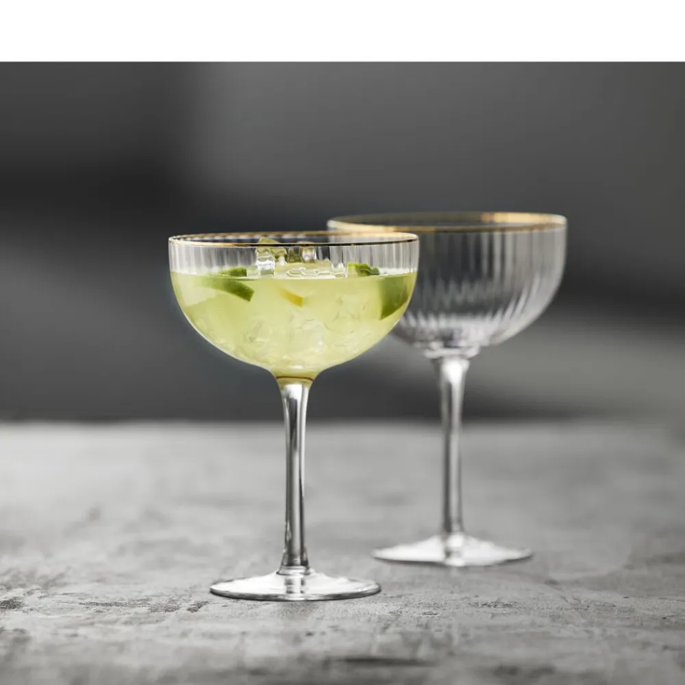 Smukt cocktailglas med bløde, rundede former. Det elegante, riflede design med en fin guldkant giver glasset et flot vintagelook, der samtidig afspejler tidens trends. Server festlige cocktails, drinks eller desserter i glasset og lad de fine facetter reflektere lyset og glassets indhold på smukkeste vis.