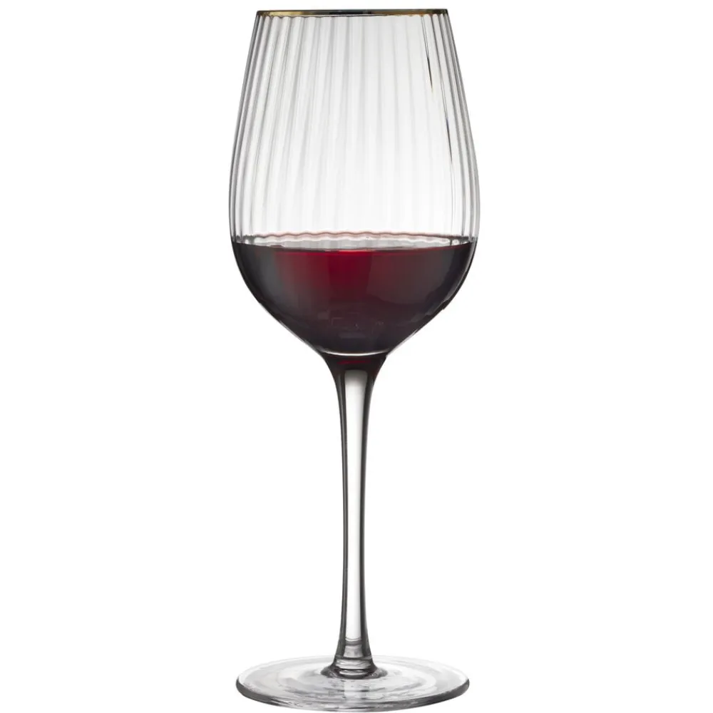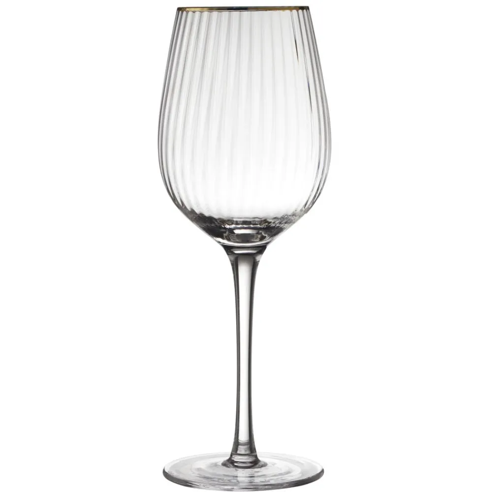 Smukt vinglas med bløde, rundede former. Det elegante, riflede design med en fin guldkant giver glasset et flot vintagelook, der samtidig afspejler tidens trends. Server din bedste vin i glasset og lad de fine facetter reflektere lyset og glassets indhold på smukkeste vis.
