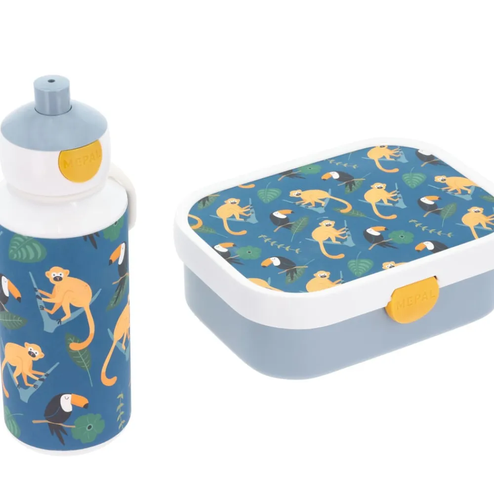 Mepal Campus sæt er et godt og praktisk valg til børn i skolealderen. Sættet består af 2 dele: en madkasse med en lille gaffel og en aftagelig indsats med to små rum samt en drikkeflaske på 400 ml med et smart pop-up system med mundstykke, der nemt udløses ved tryk på en knap. Velegnet til opvaskemaskine.