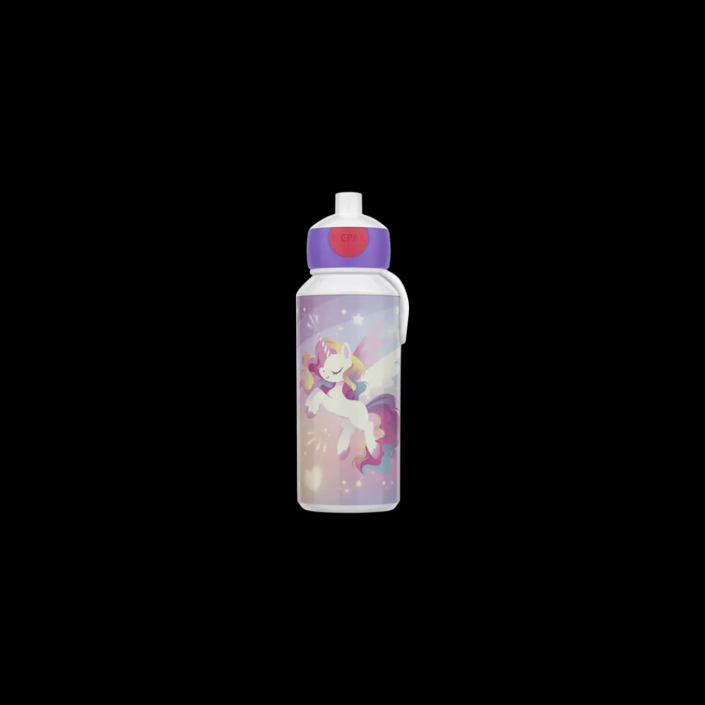 Mepal drikkeflaske med Unicorn Glow-motiv. Den kendte, robuste drikkeflaske rummer 400 ml, har praktisk silikonestrop og et smart pop-up system med mundstykke, der nemt udløses ved tryk på en knap og samtidig er let at skille ad og rengøre.