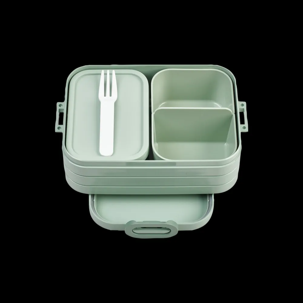 Robust Take-a-break madkasse, som holder den medbragte mad frisk, smagfuld og adskilt. Kan bruges til sandwiches, salater, frugt og lignende. Madkassen er bentoopdelt og indeholder to bentobokse med låg samt en frugtgaffel. Mål 17 x 12 x 6,5 cm.