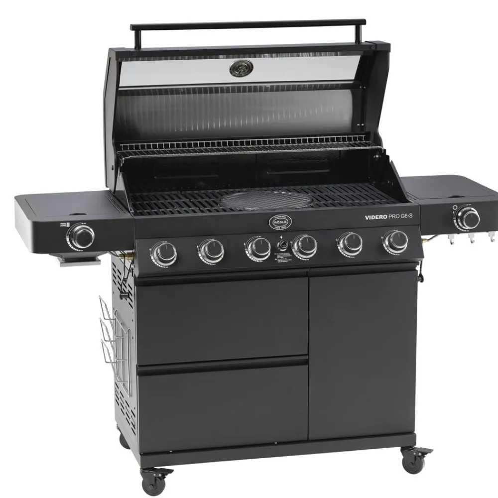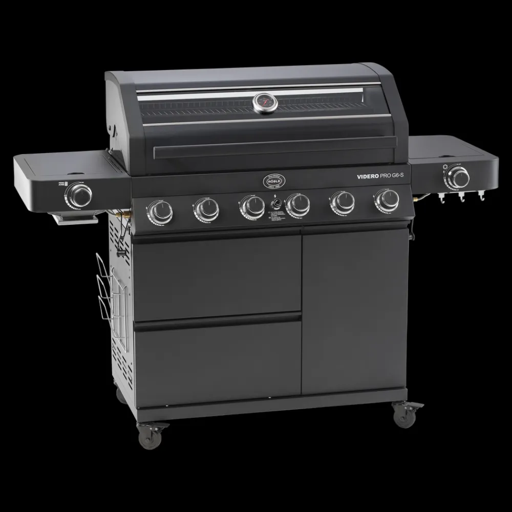 Videro PRO G6-S er udstyret med belyste knapper, foldbare sideborde og fuldt udtrækkelige skuffer, der gør det nemt at holde styr på både . Det robuste kabinet i pulverlakeret stål og de store gummihjul gør grillen nem at flytte og ekstremt holdbar – år efter år.