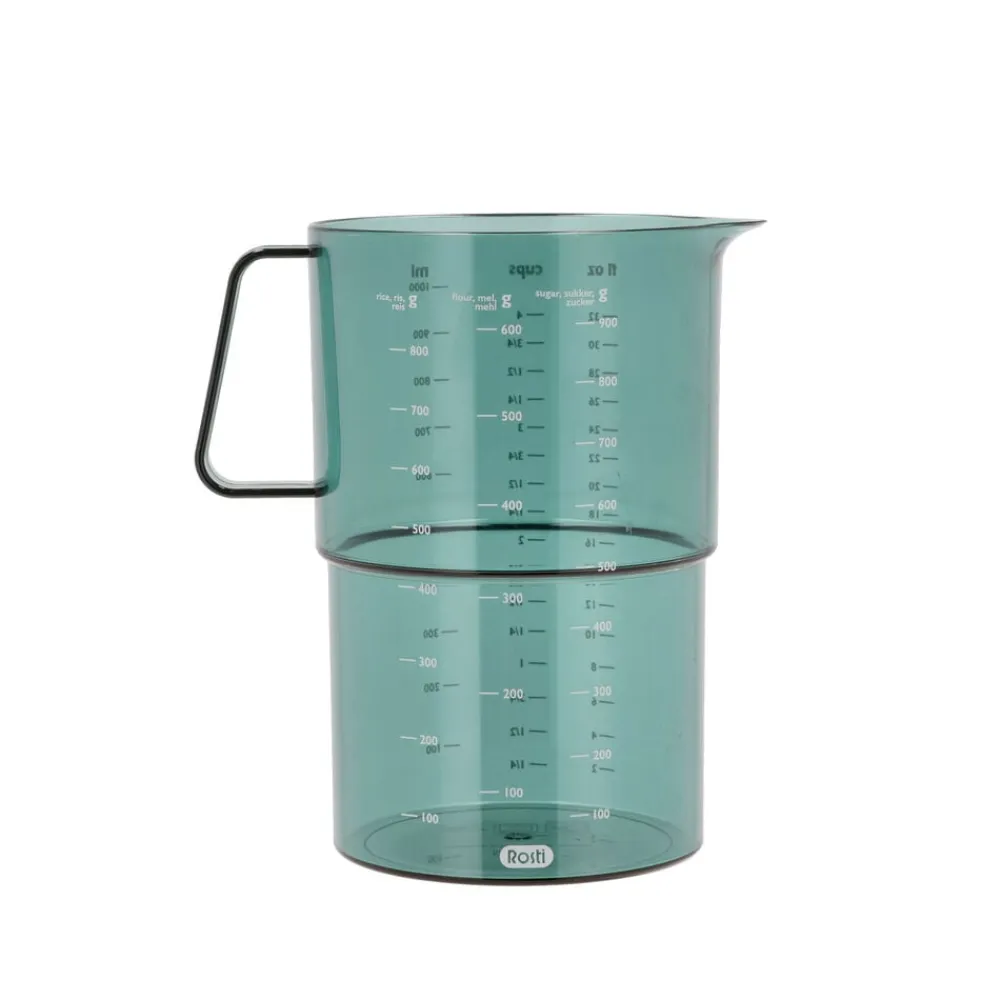 Mensura målekanden tåler kogende vand, rummer 1 liter og har en tydelig opdeling midtpå, så det er nemt at aflæse en halv liter. Desuden har kanden tydelige måleindikatorer for ml, cups og fl oz samt for mel, ris og sukker. Kanden har tud og kraftigt håndtag.