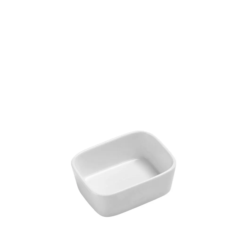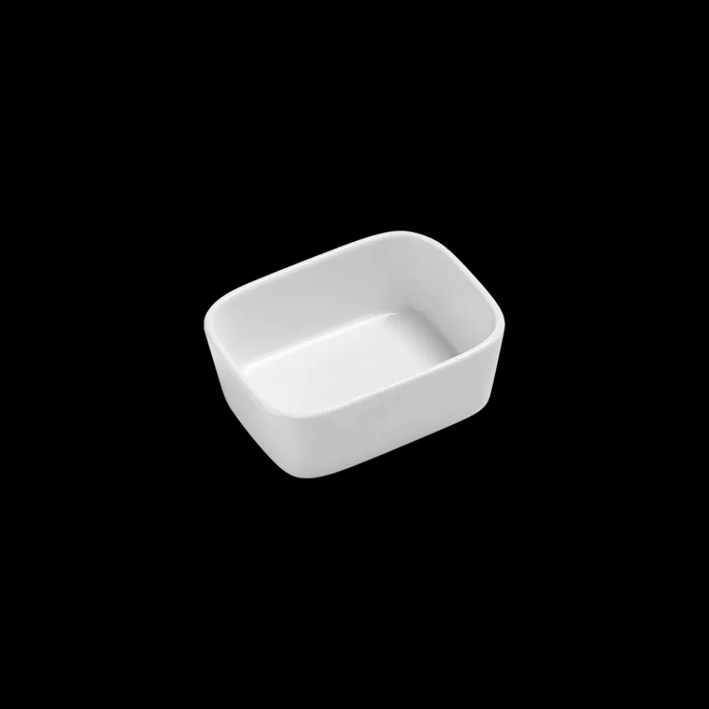 Ovnfast fad i hvidt porcelæn til det skandinaviske køkken. Fadet er fremstillet i forstærket porcelæn, der kan tåle ovntemperatur helt op til 350 grader. Den høje kant og praktiske form giver mange anvendelsesmuligheder. 12,5 x 9 x 4,5 cm.