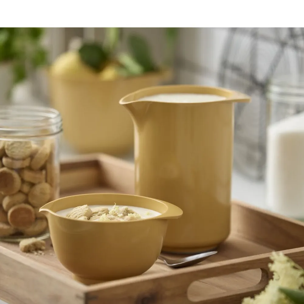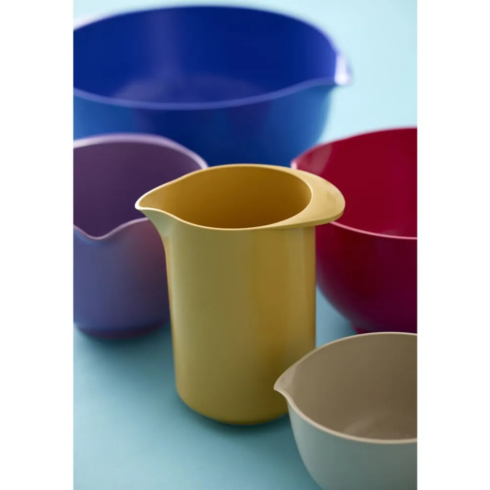Rostis klassiske mixkande er et musthave i ethvert køkken, såvel til tilberedning som til servering og opbevaring. Mixkanden er designet til at matche Margrethe-skålen og fås i de samme farver. Kanden har praktisk greb og hældetud og rummer 1,25 liter, og den er lige praktisk til at piske flødeskum i og til at servere drikkevarer i.