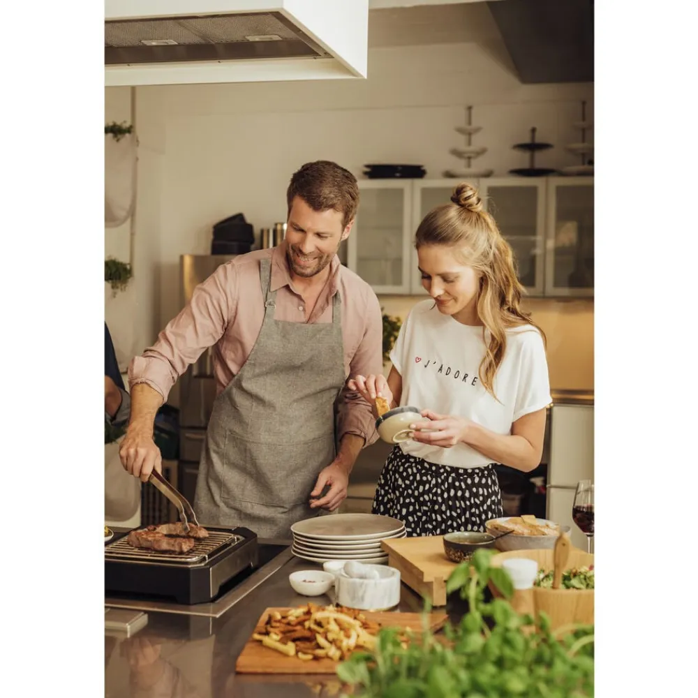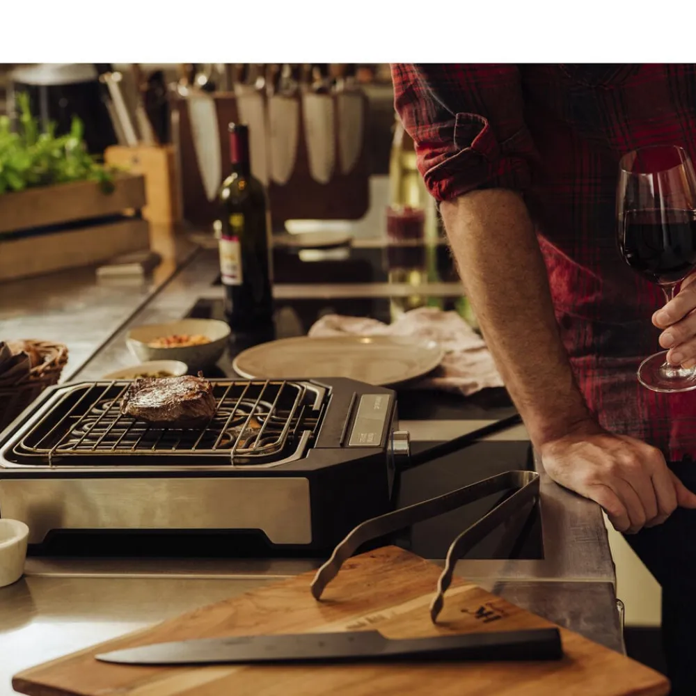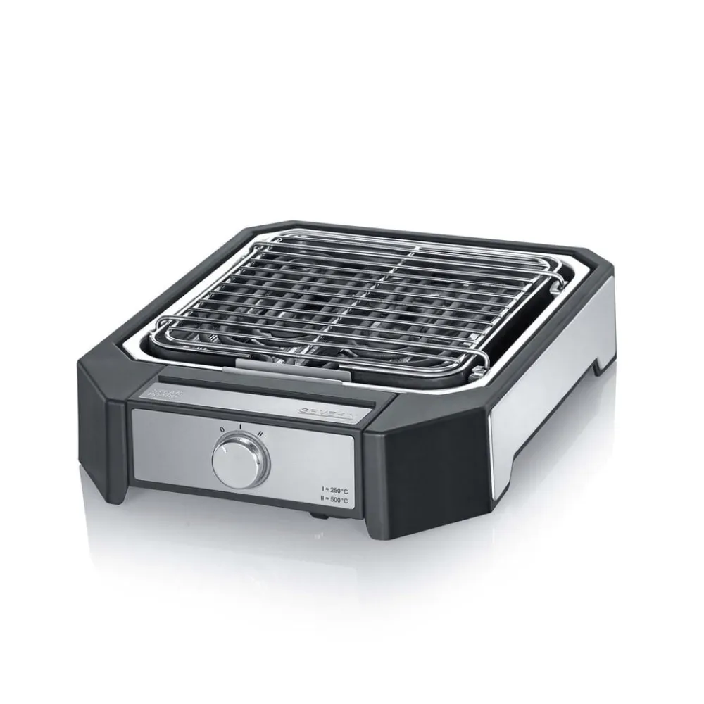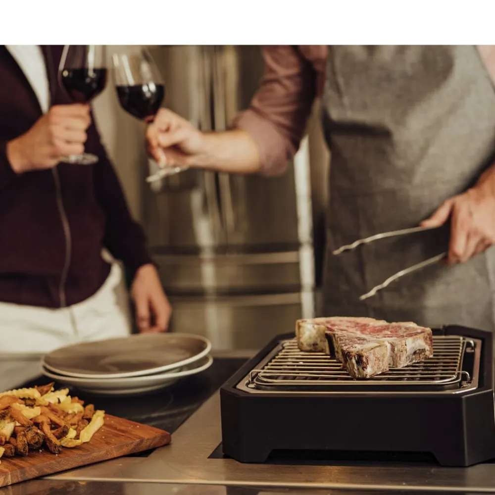 På den smarte steakgrill med grillrist og specialdesignet reflektorbakke kan du stege perfekte bøffer med den rigtige grillskorpe udenpå og bløde og saftige indeni. Med to indstillinger: hurtig svitsning (op til 500 grader) og moderat grillning. Grilloverfladen måler ca. 21 x 21,5 cm. Let at skille ad og rengøre. 2300 watt.